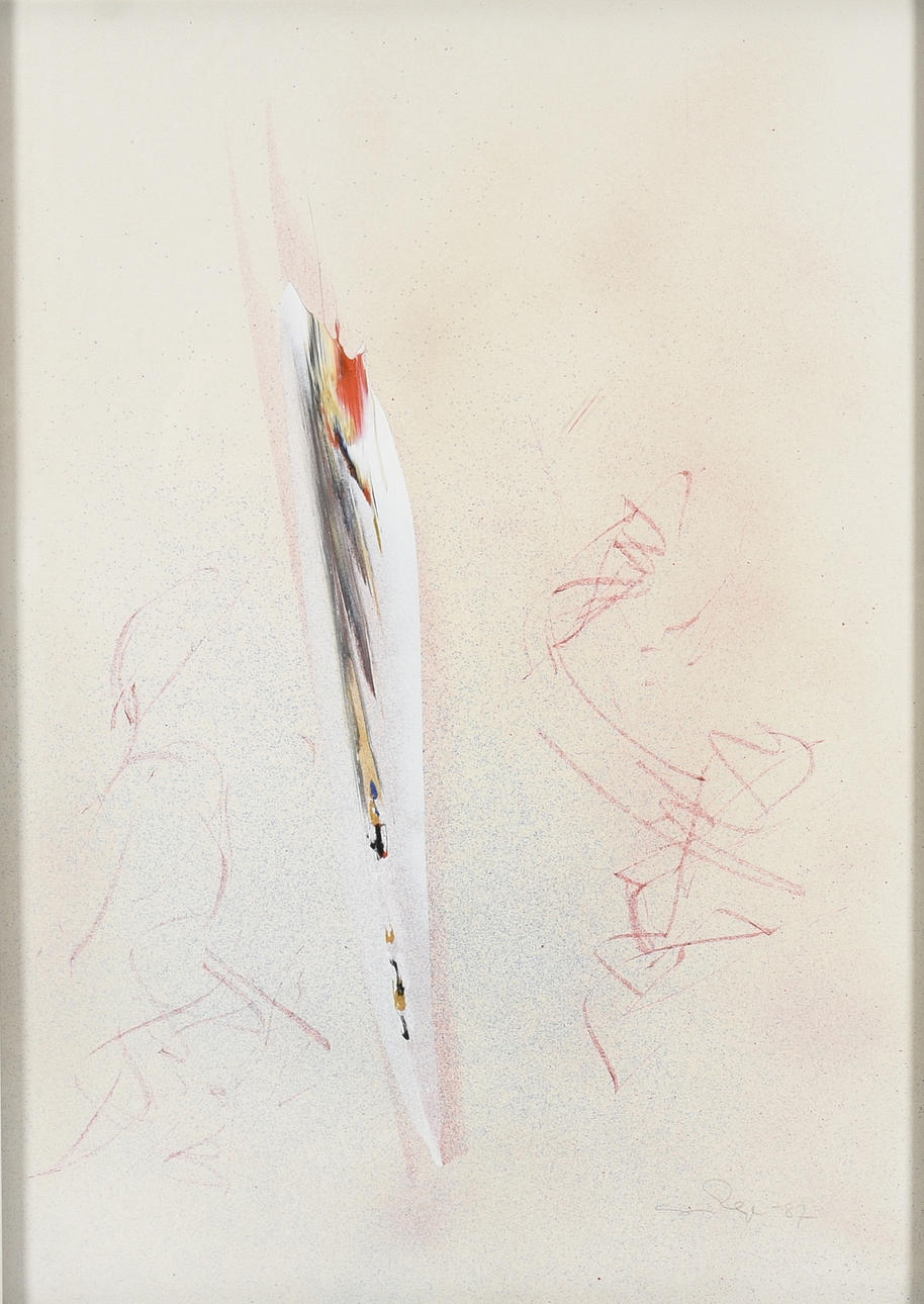 Abstrakt komposition. Oidentifierad signatur. Daterad -87