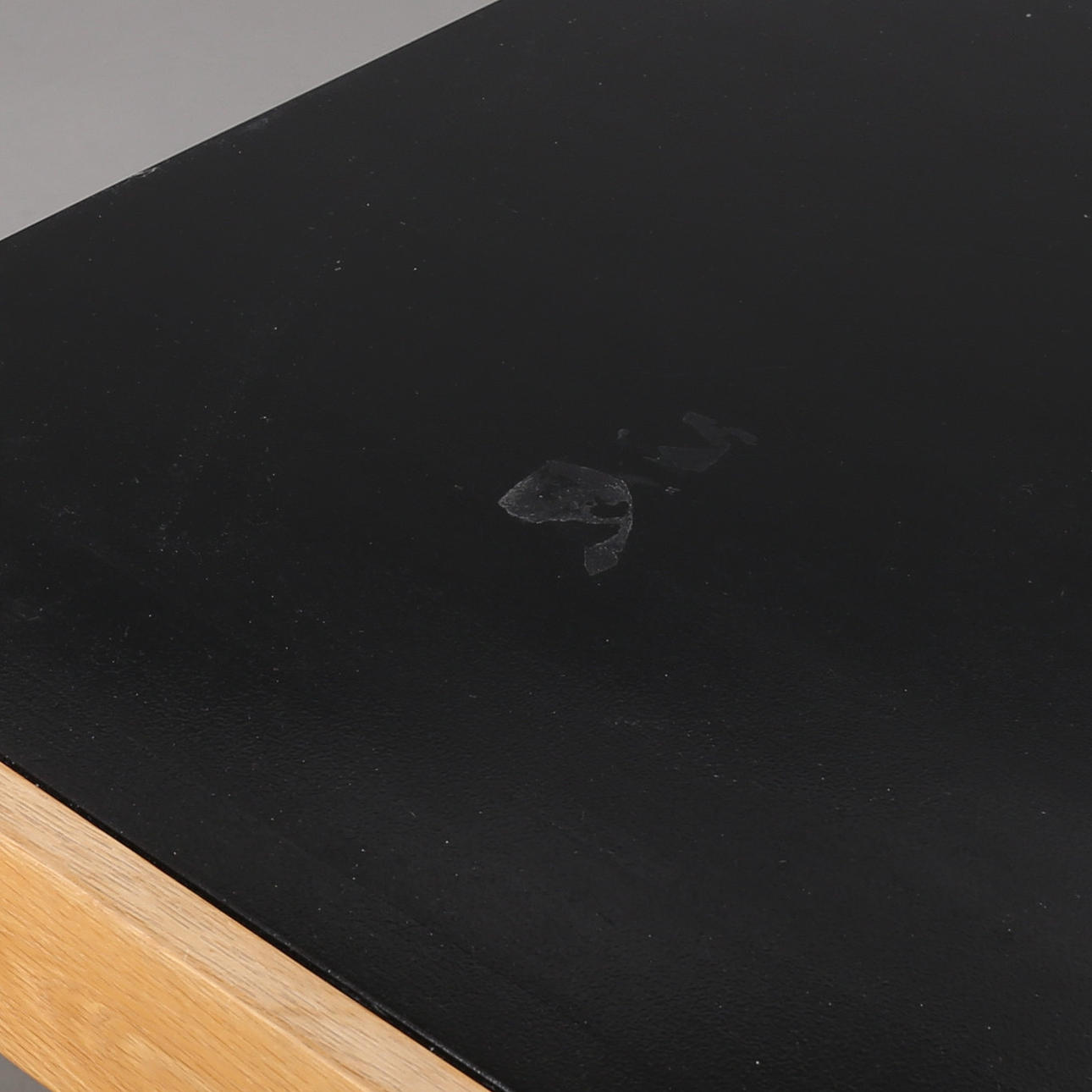 Stolarna med förstärkningar, spricka i ett ben, bordsskiva med repor.