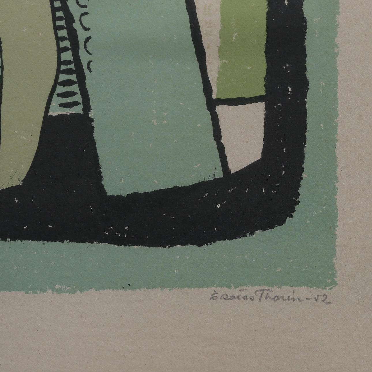 Esaias Thorén, kvinnogestalt, daterad -52. Bildyta ca 40x30 cm. Stellan Mörner, bildyta ca 28x40 cm.