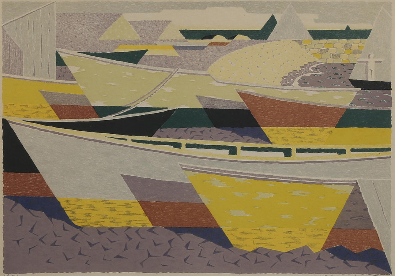 Waldemar Lorentzon, motiv med båtar. Bildyta ca 28x40 cm. Samtliga numrerade 168/300.