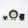 8 st kaffekoppar, höjd ca 6,5 cm. 4 st muggar, höjd ca 10,5 cm. 3 st fat, diameter 15,5 cm.