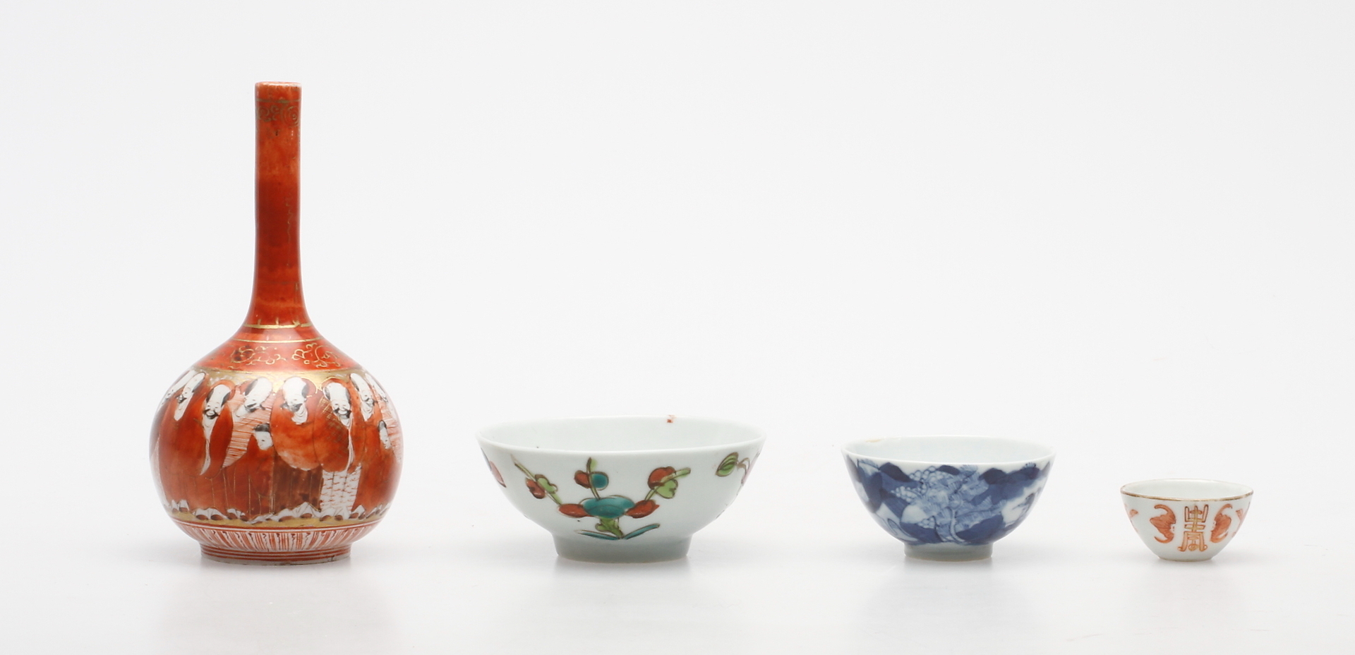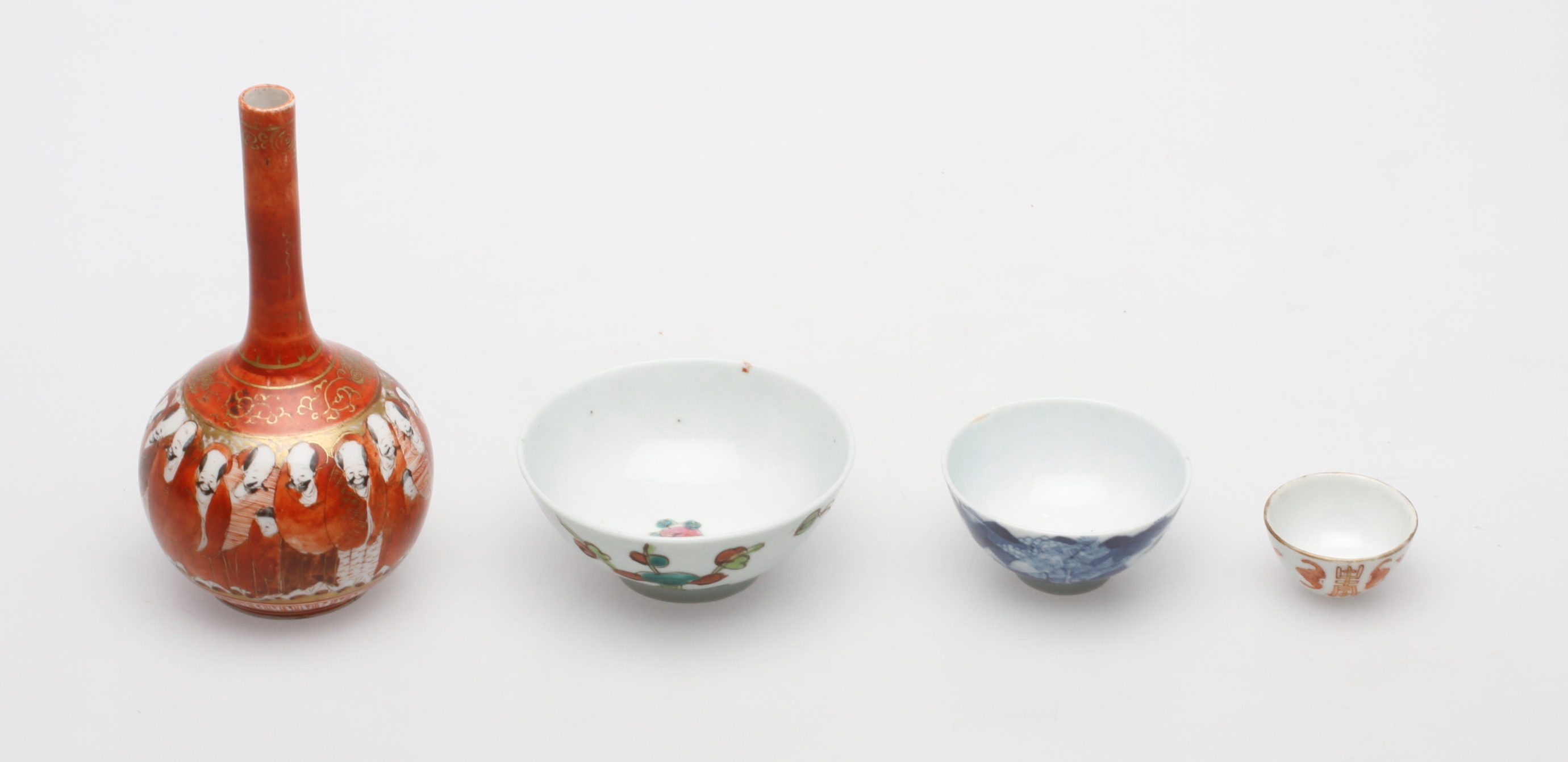 127807. KERAMIKFÖREMÅL, 4 delar, ostindiska.