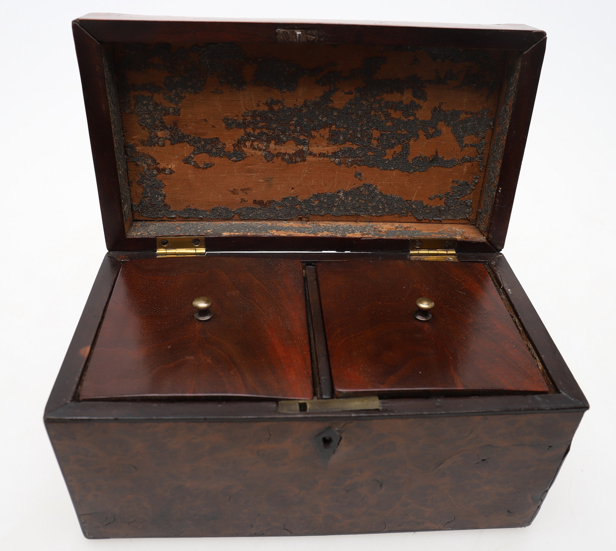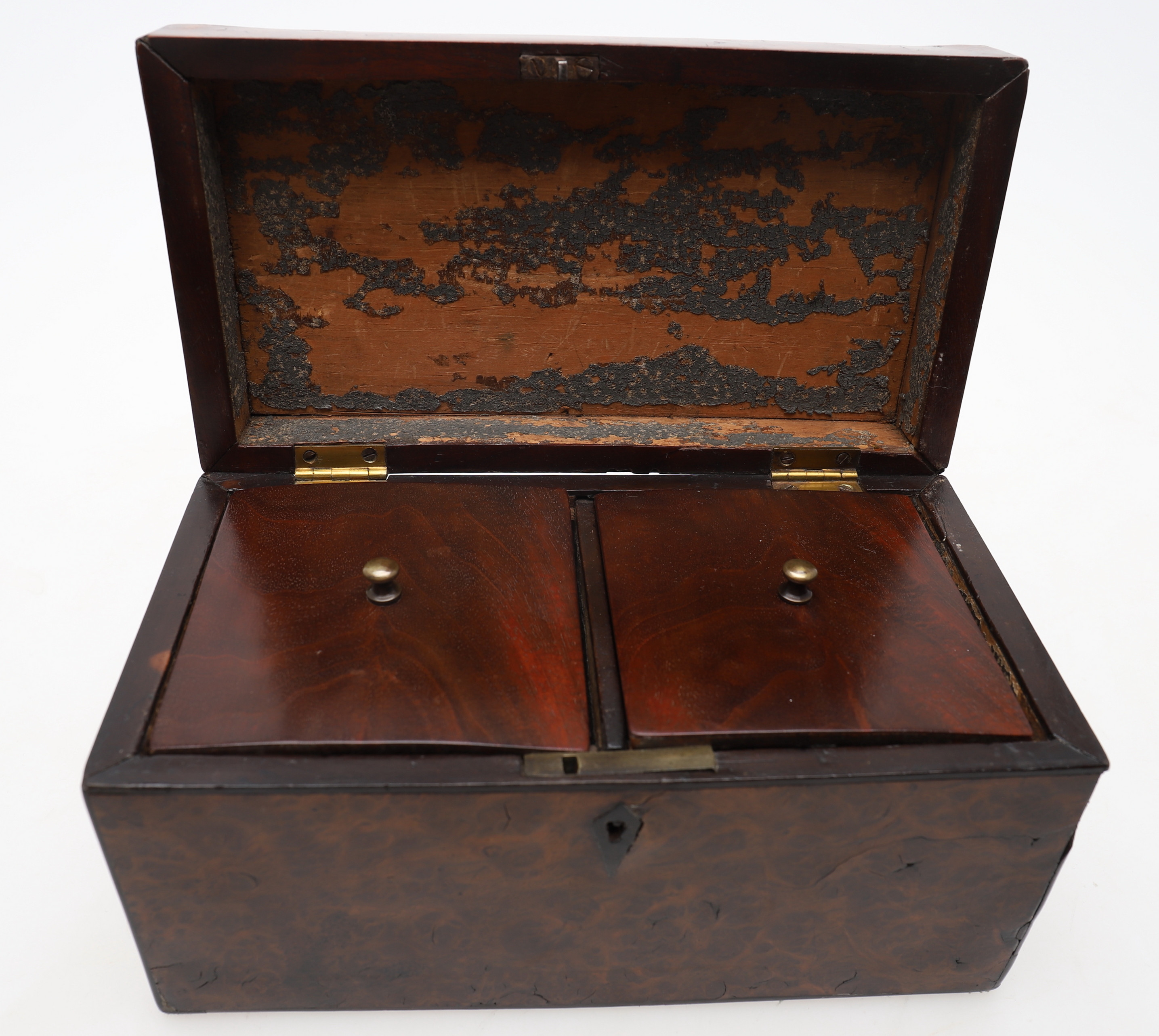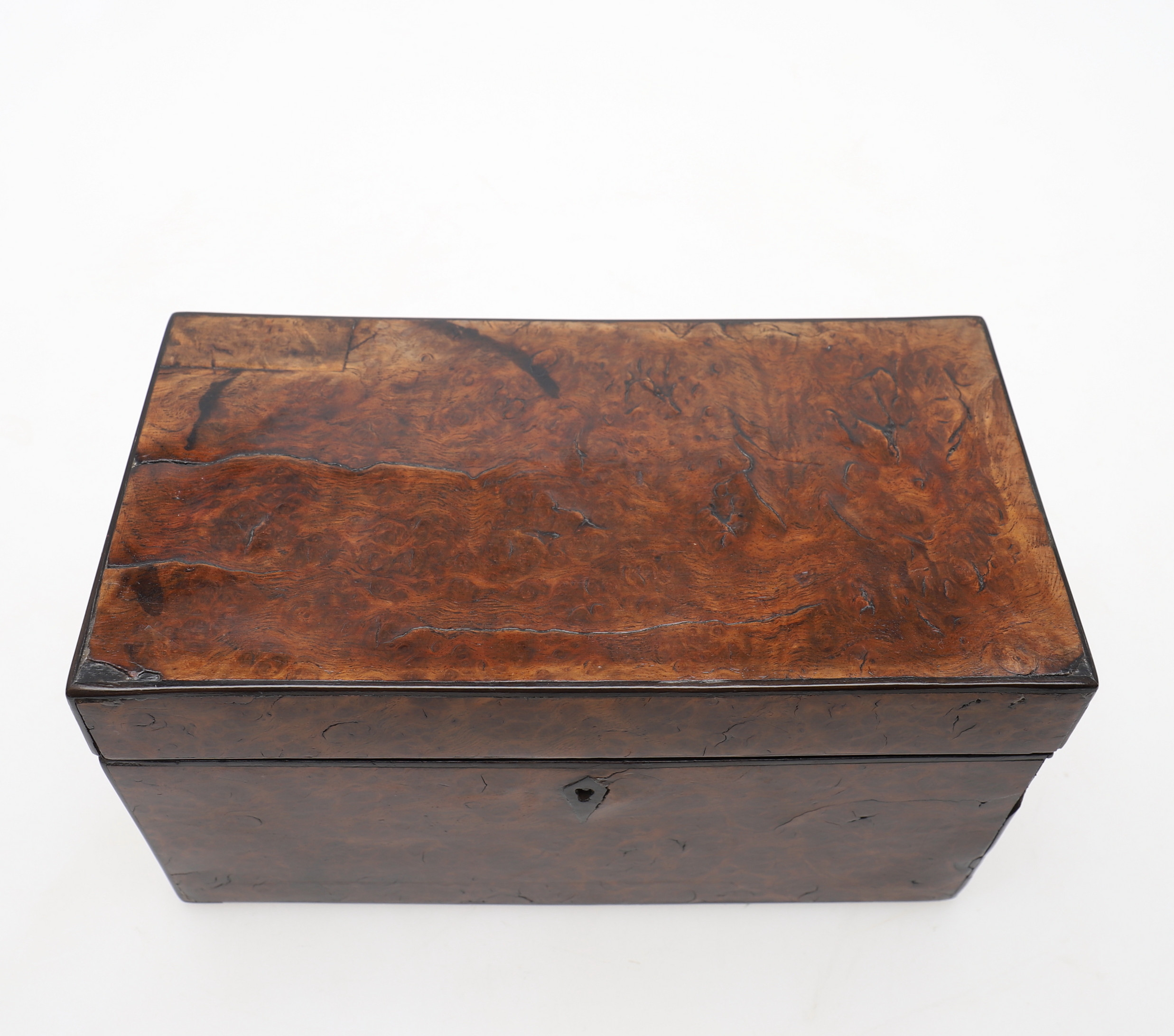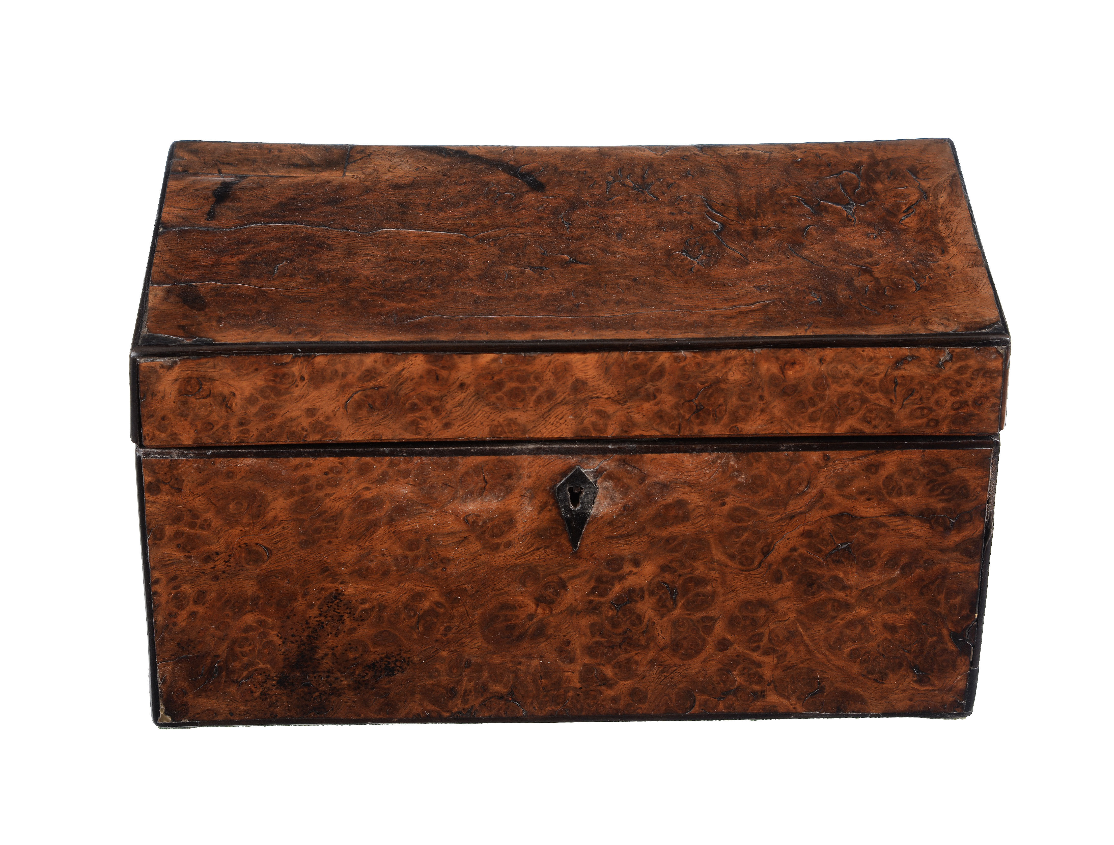 1280855. GEORGE III BURR ALM REKTANGULÄR TE CADDY, OMKRING 1800.