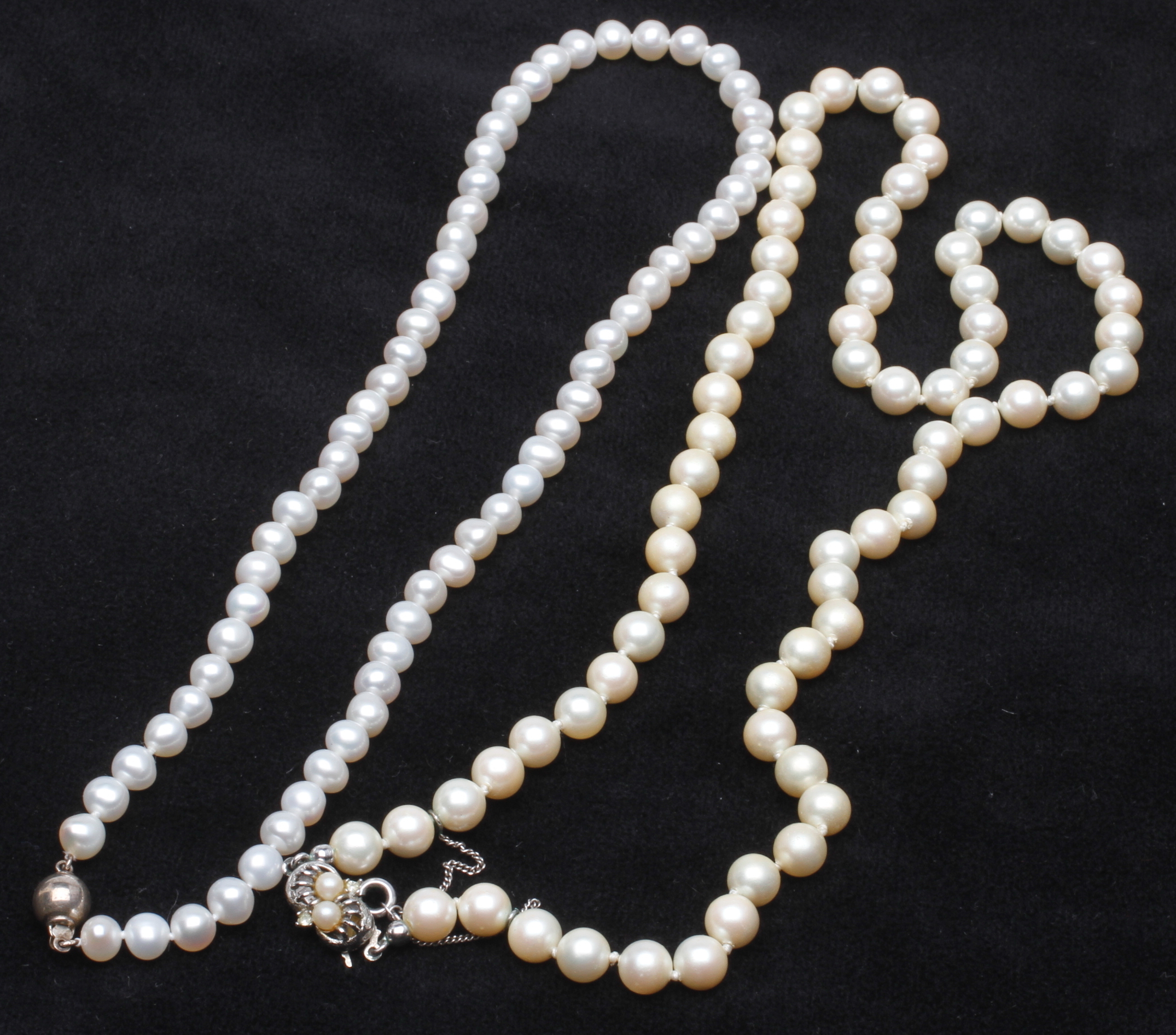 128108. COLLIER, 2 st, pärlor, silverlås.