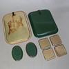 Rektangulära, 39,5x28cm resp 33,5x27cm Kvadratiska, 10,5x10,5cm Elliptiska, längd 15,5cm.