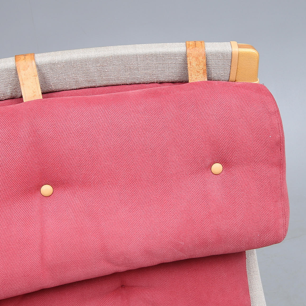 Slitage, blekt klädsel, läderrem med skador.