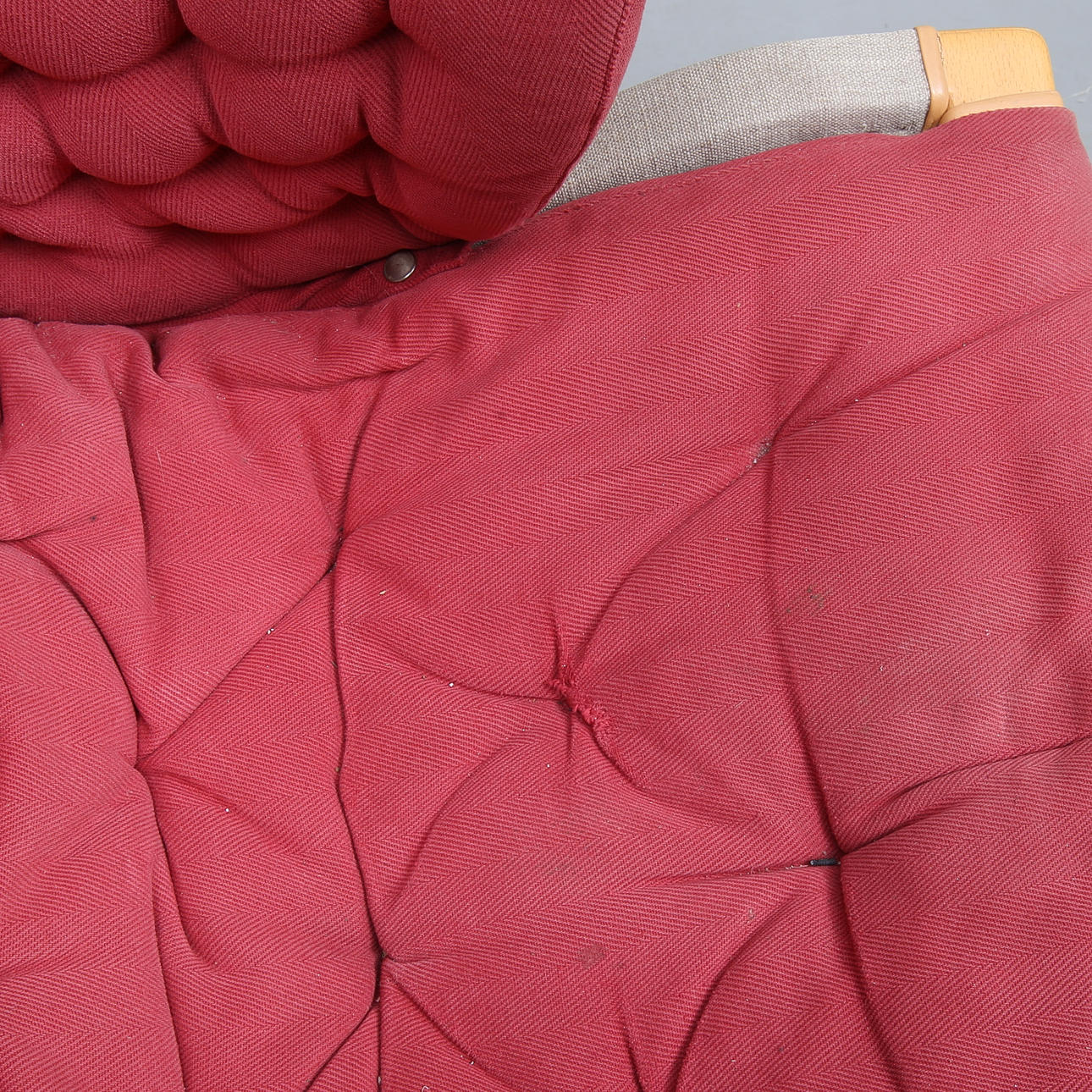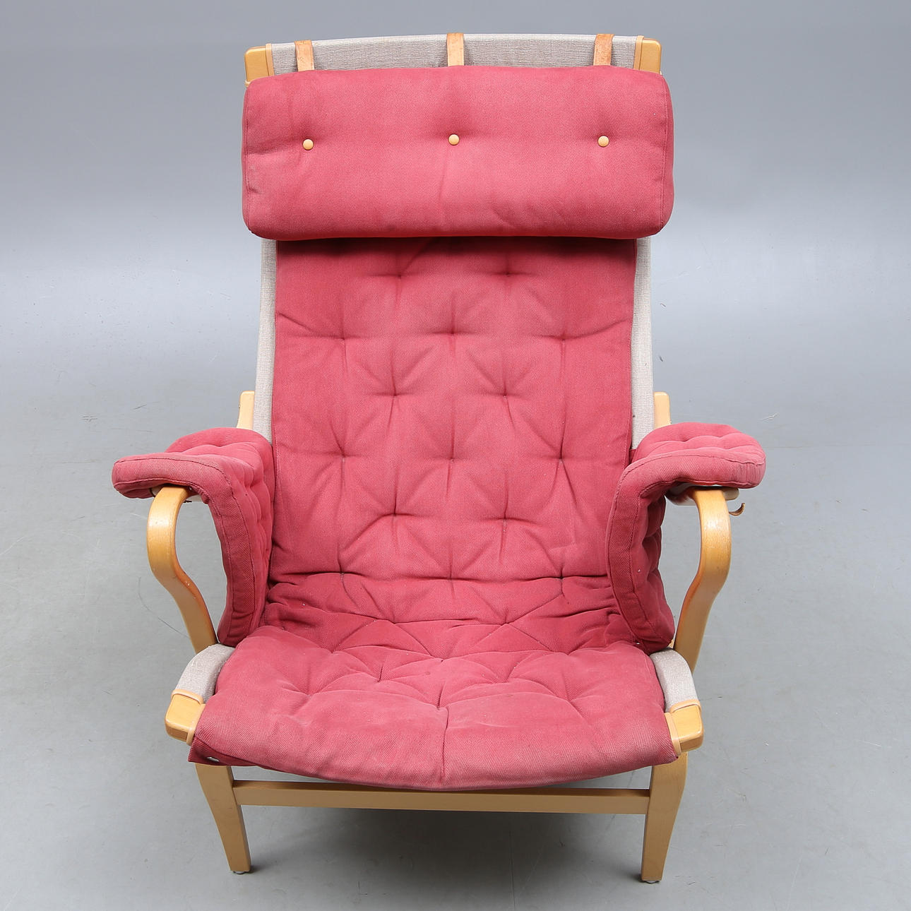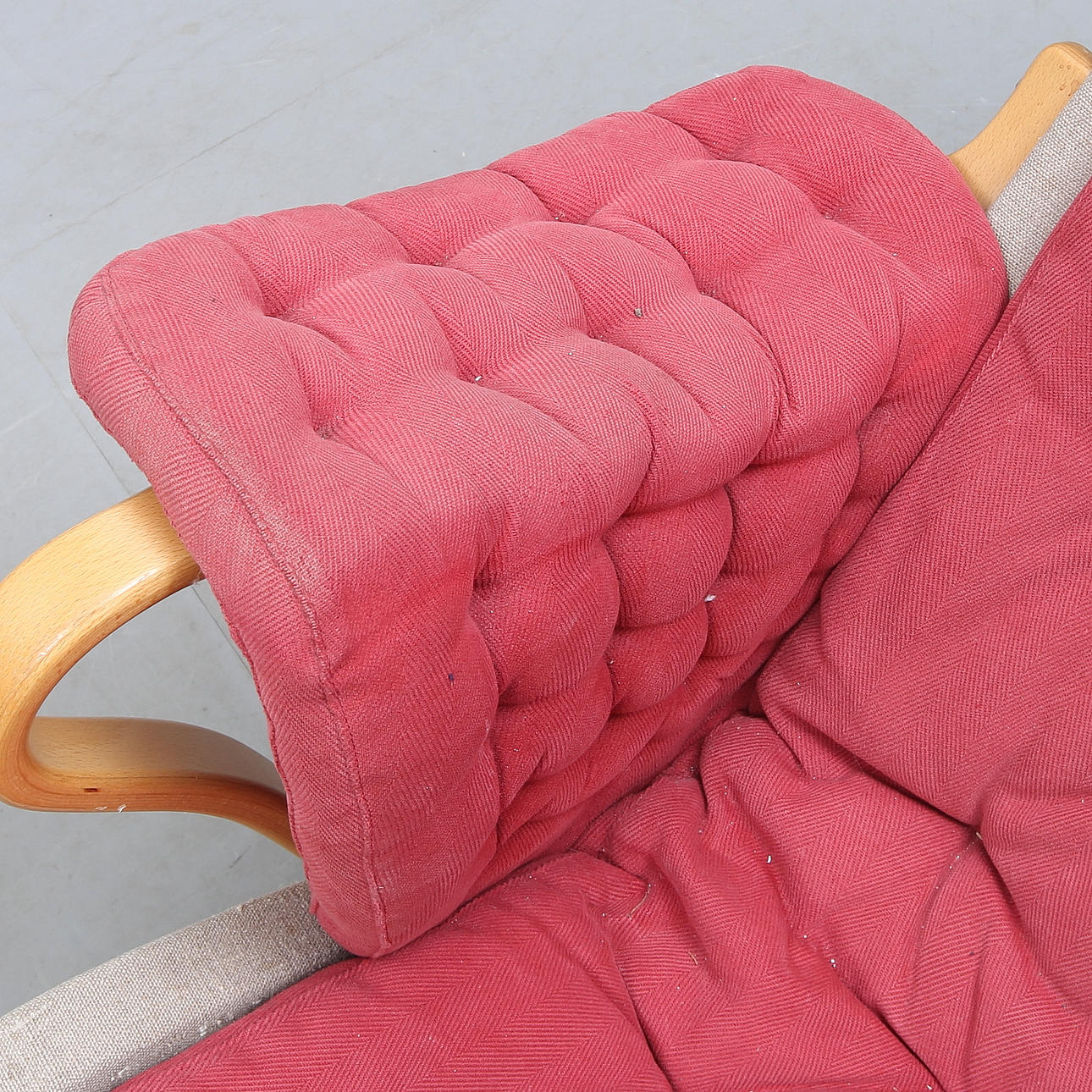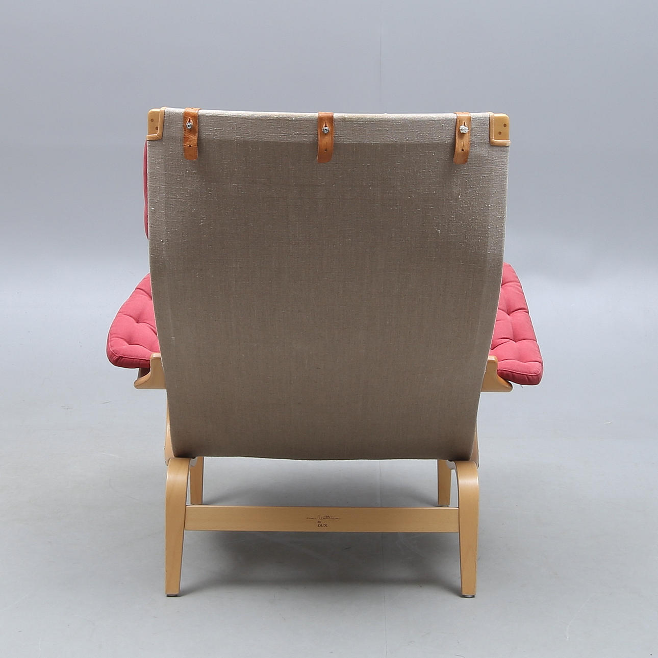 Brännmärkt, röd tygkldsel, rygghöjd ca 96 cm.
