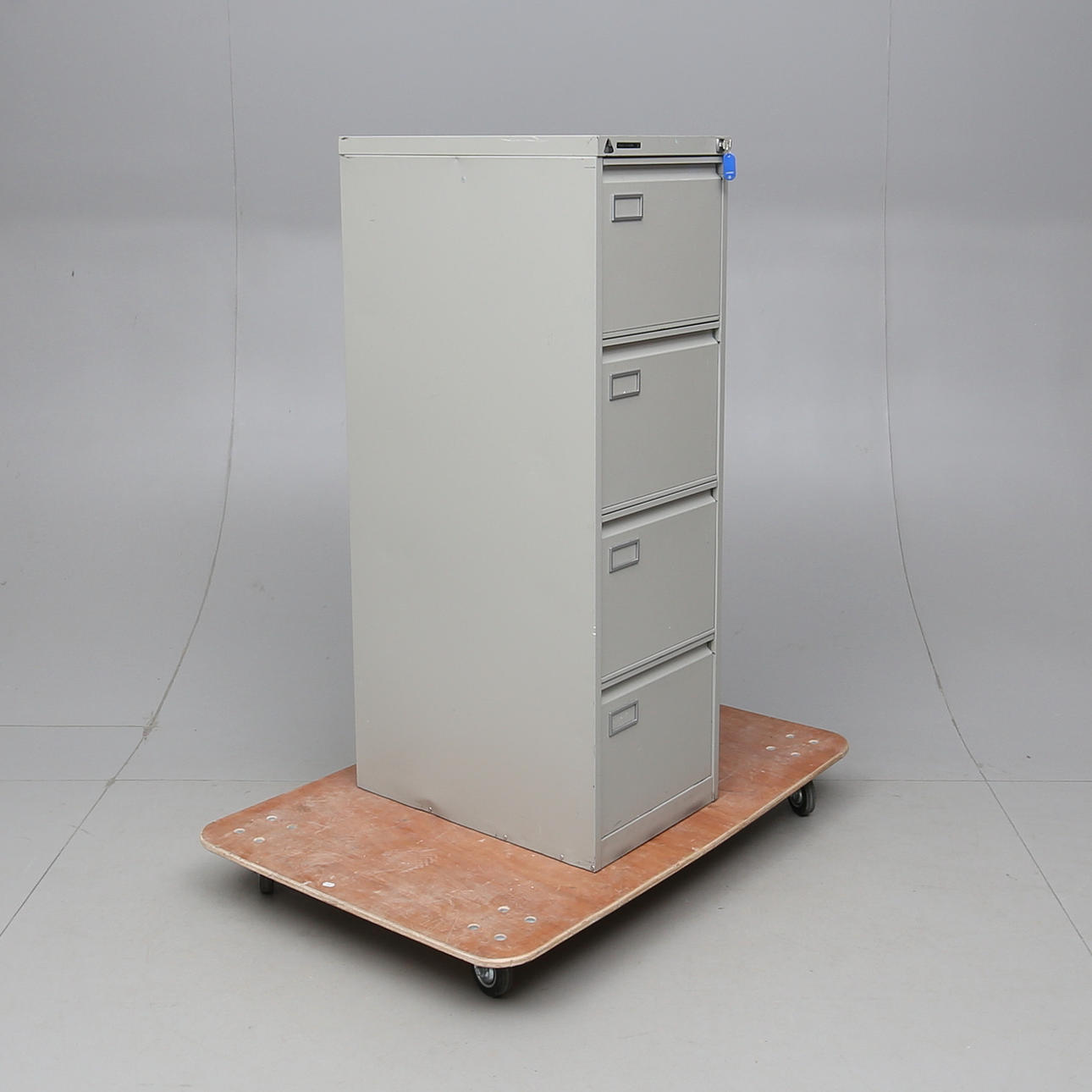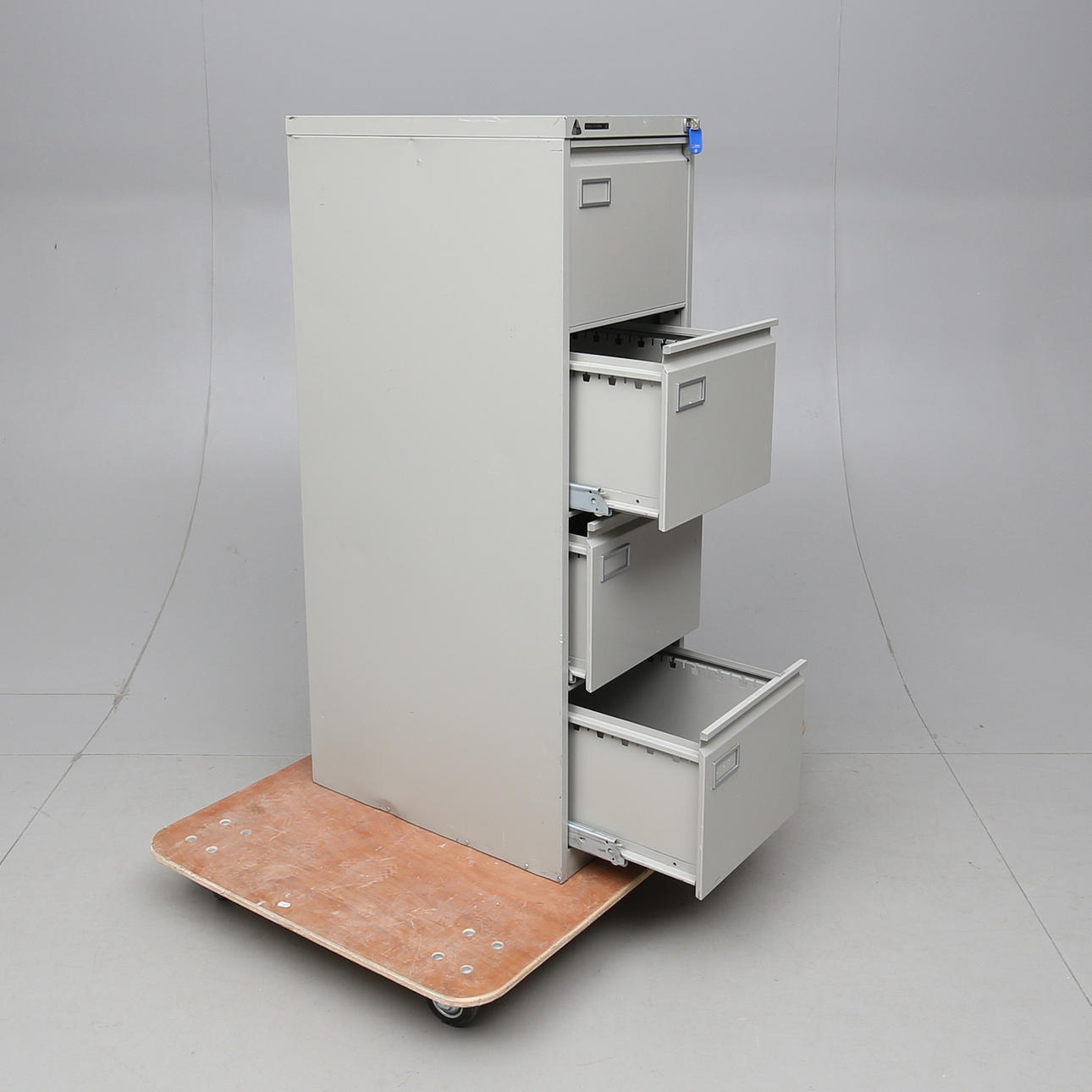 Plåt. Fyra lådor. Längd 41. Bredd 62. Höjd 132 cm.
