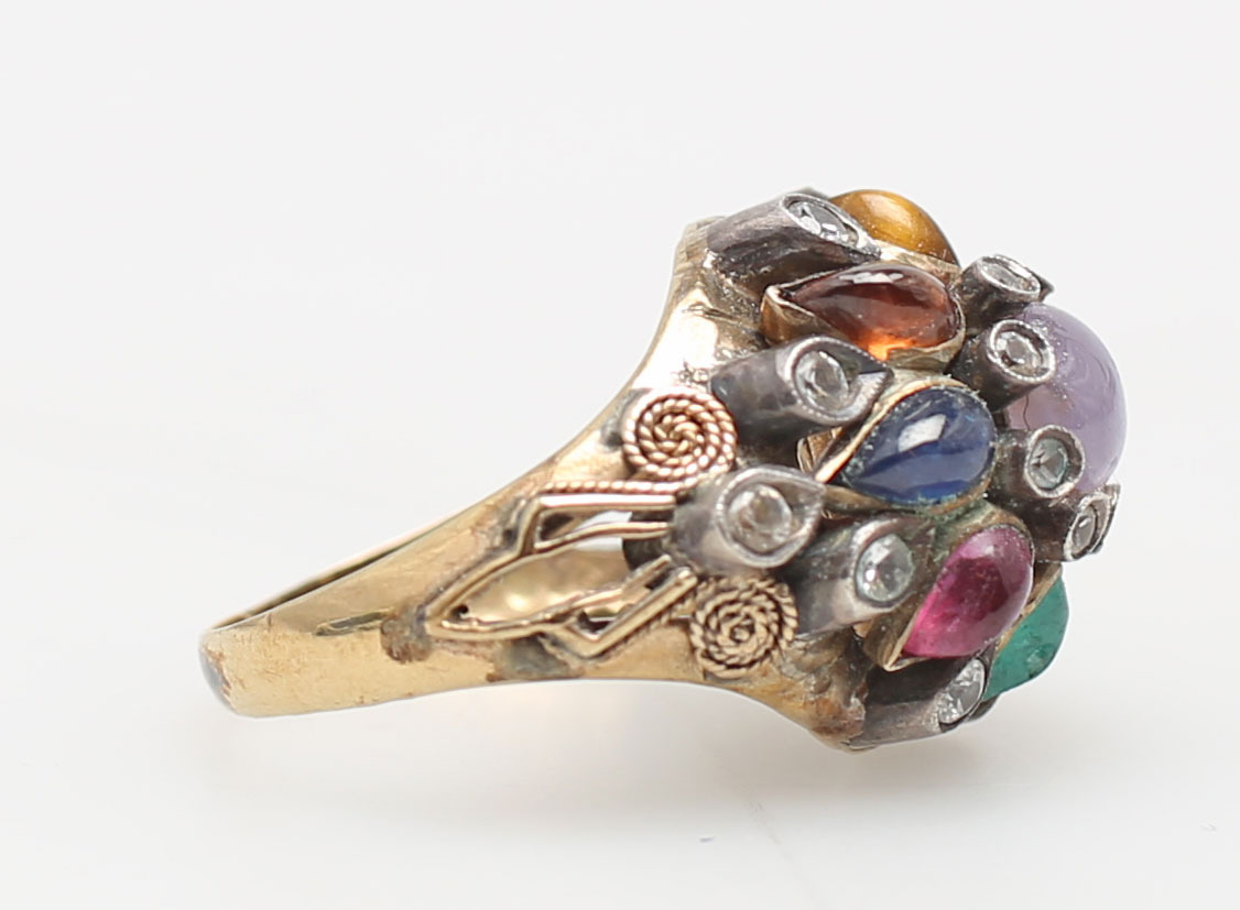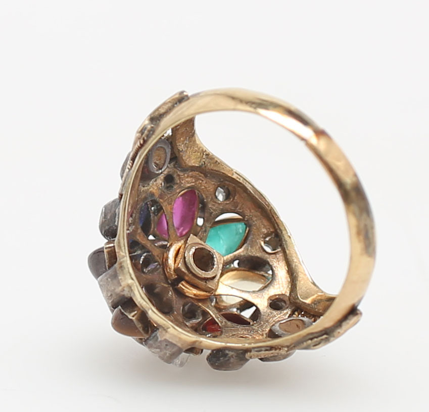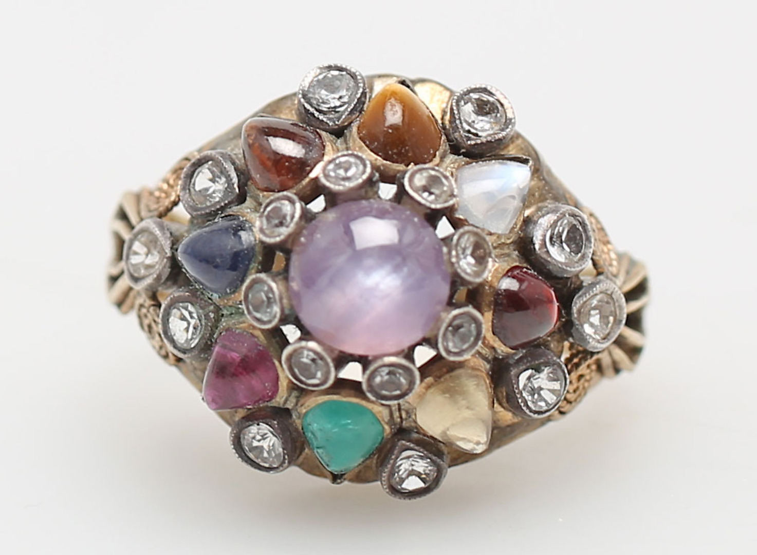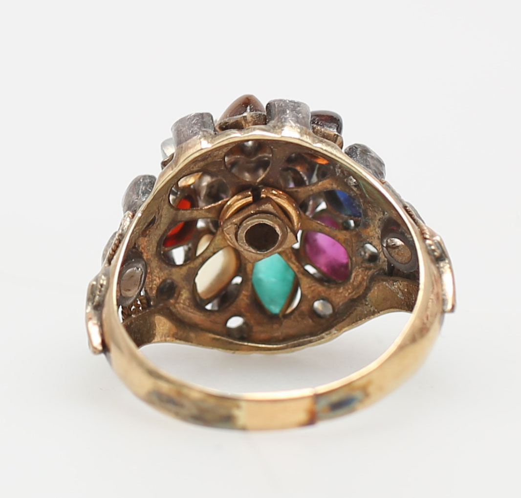 128256. RING MED HALVÄDELSTENAR, rödguld, 8K.