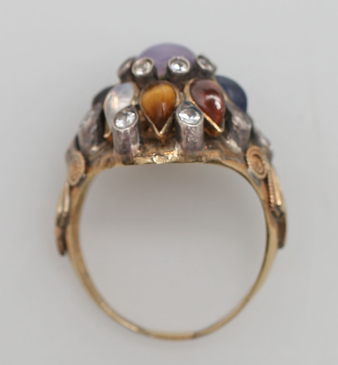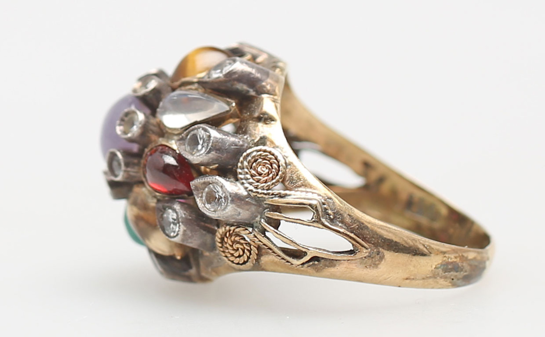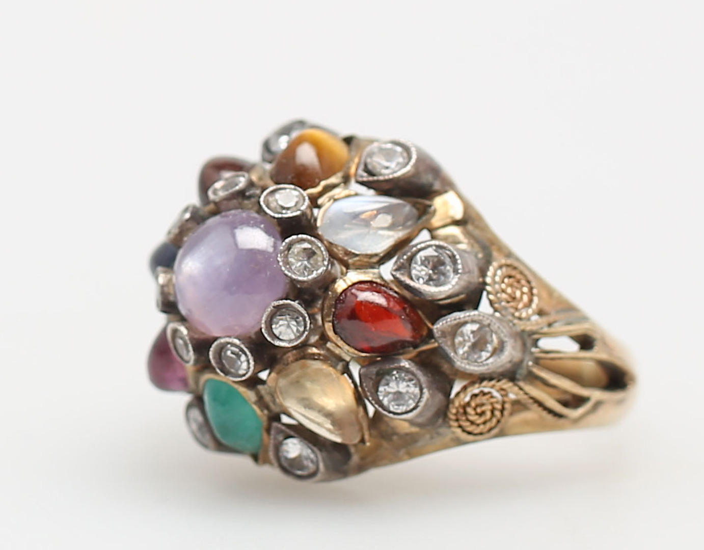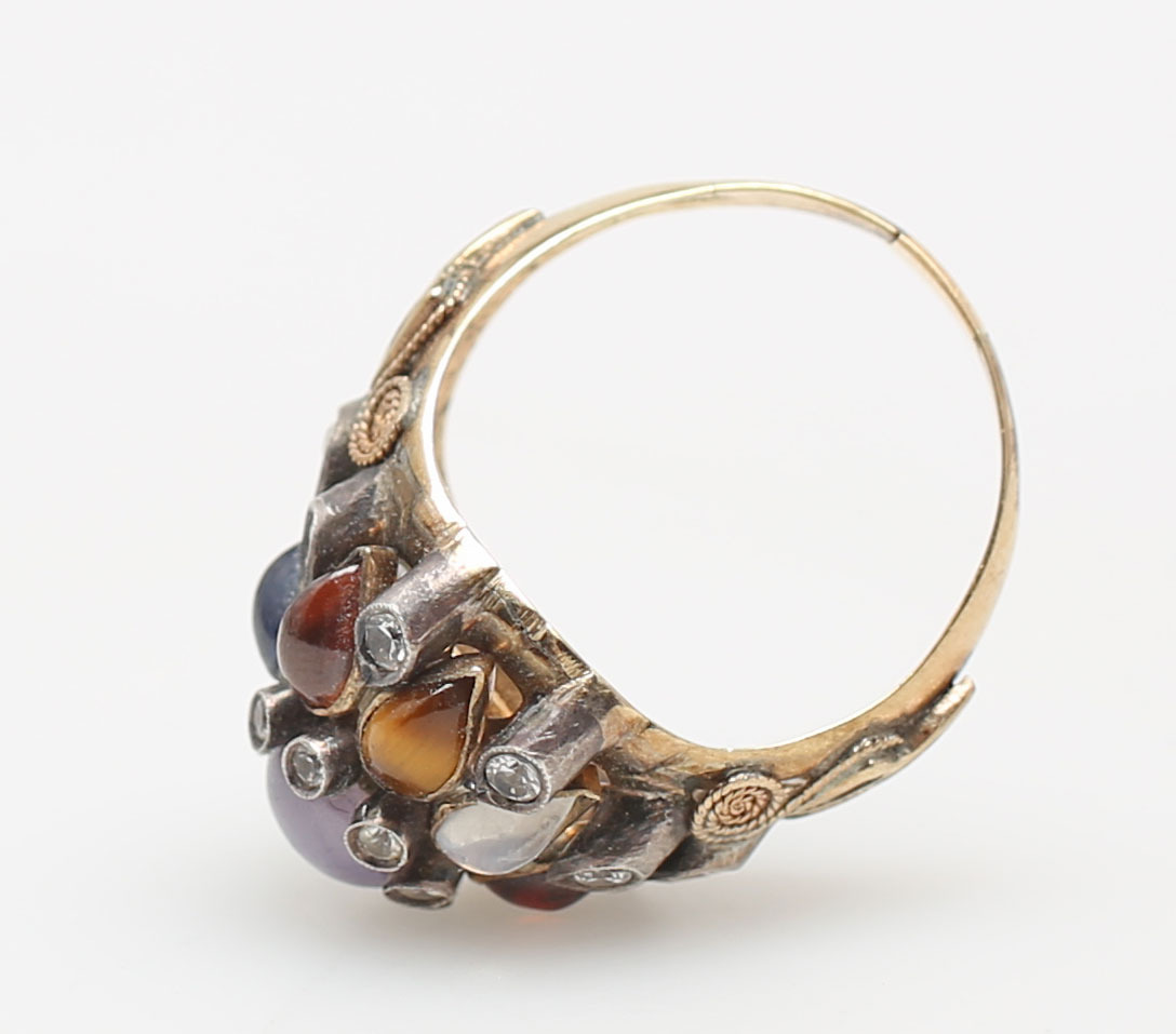 128256. RING MED HALVÄDELSTENAR, rödguld, 8K.