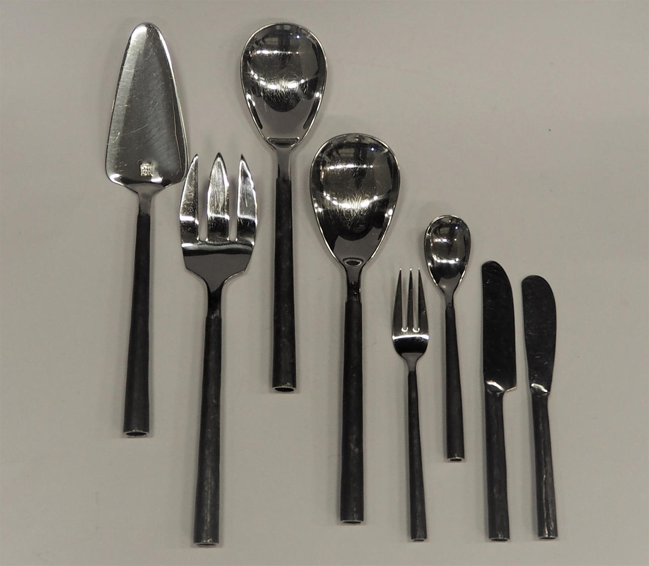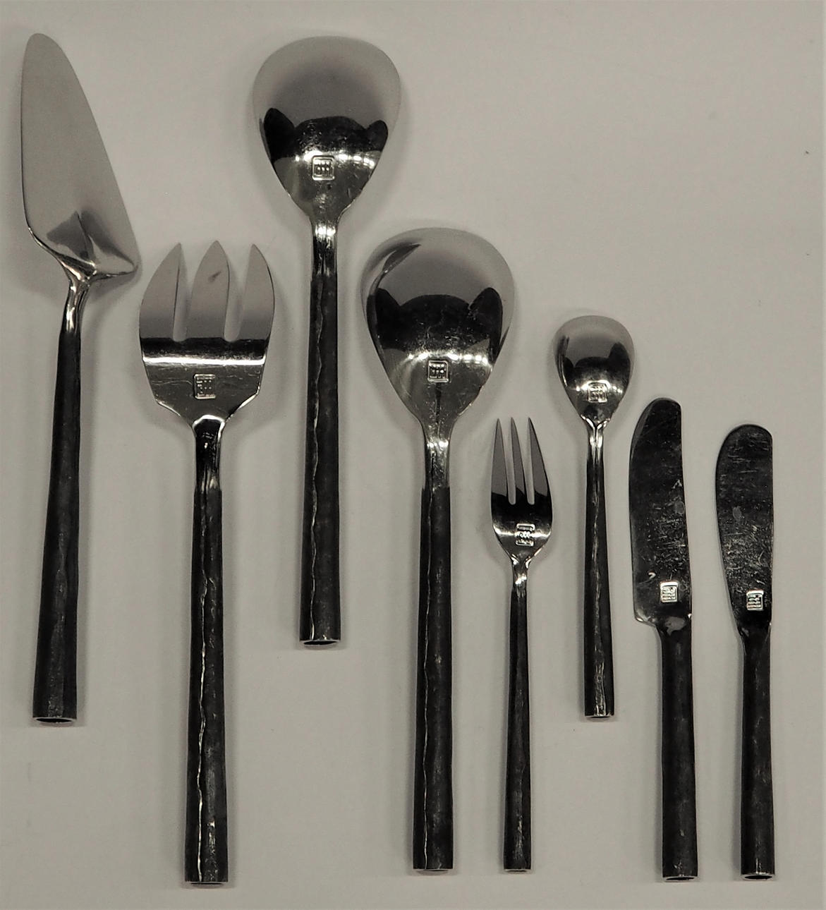 Två uppläggningsskedar och gaffel, längd ca 27 cm