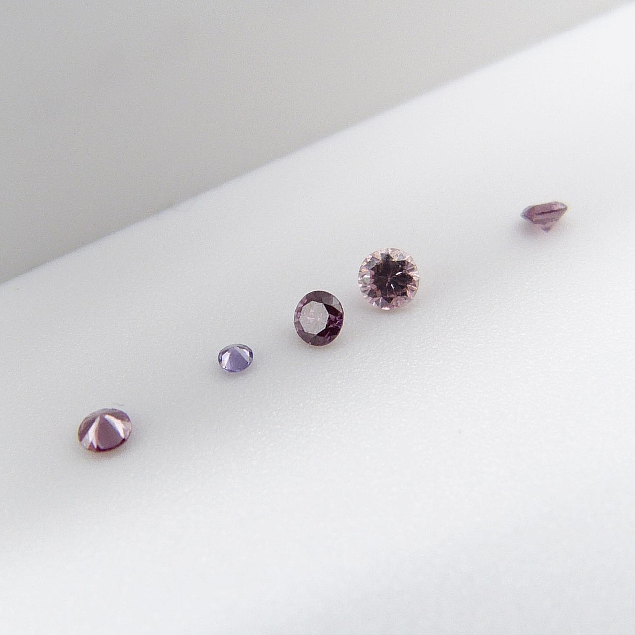 5 x runda, briljantslipade rosa diamanter med en kombinerad karatvikt 0,15 ct.