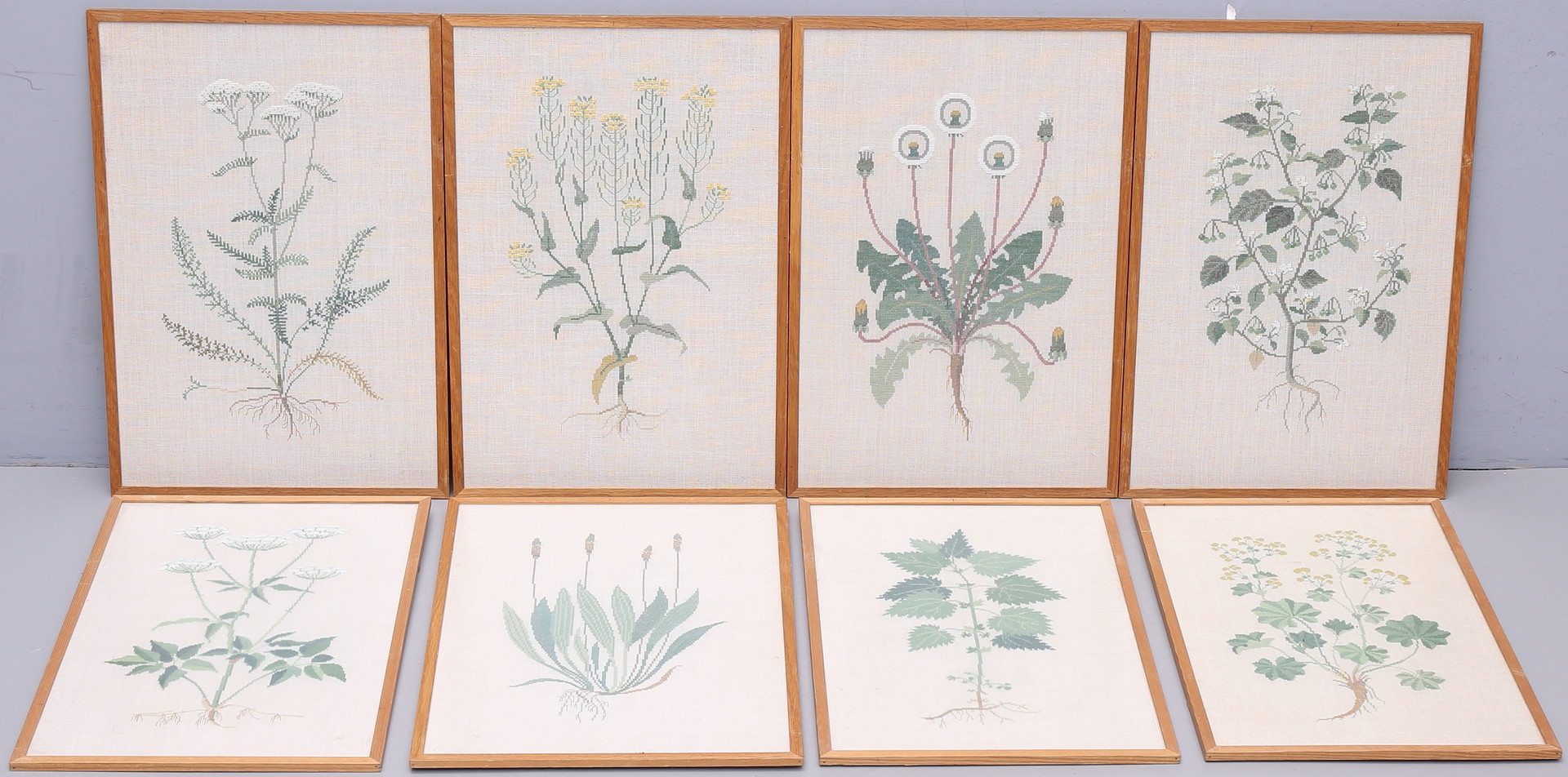 1284546. BRODERADE TAVLOR, 8 st, korsstygn.
