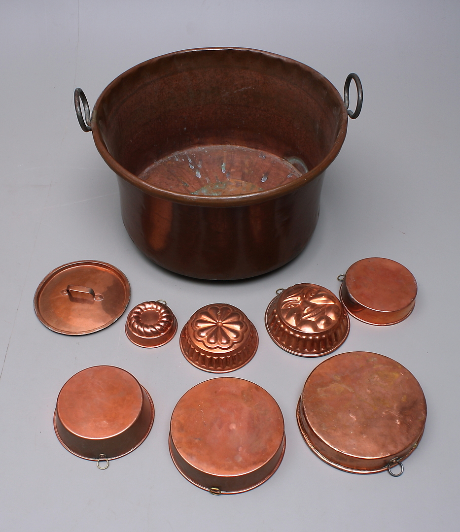 128690. KOPPARFÖREMÅL, 8 st + KOPPARBALJA.