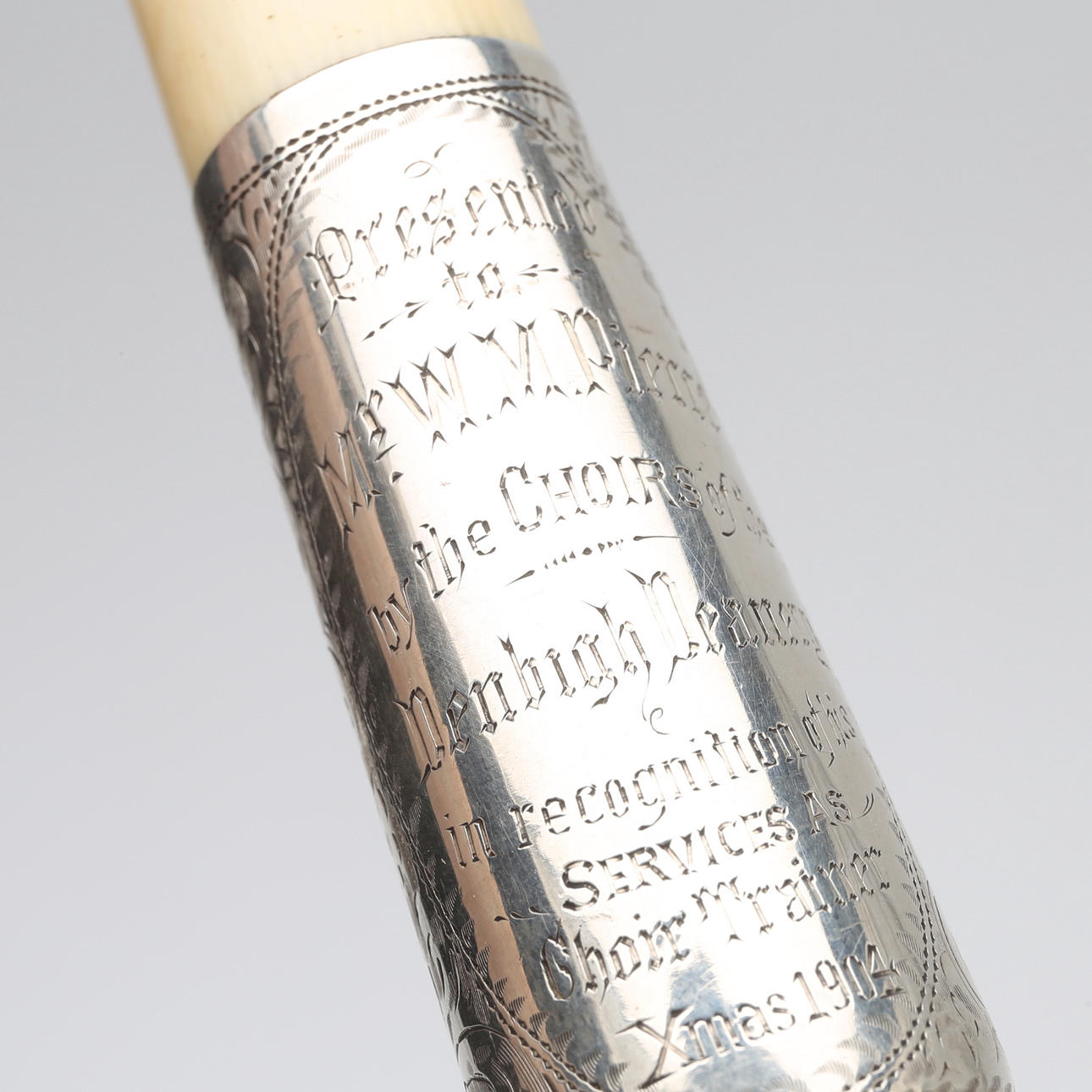 med gåvotext 1904, längd 45 cm, hopfällbar, med etui.
