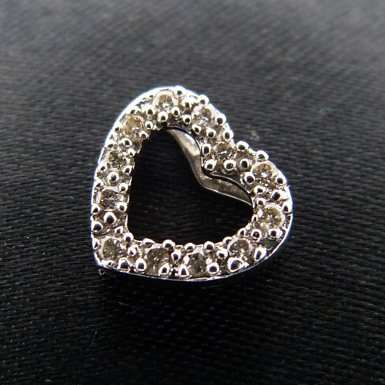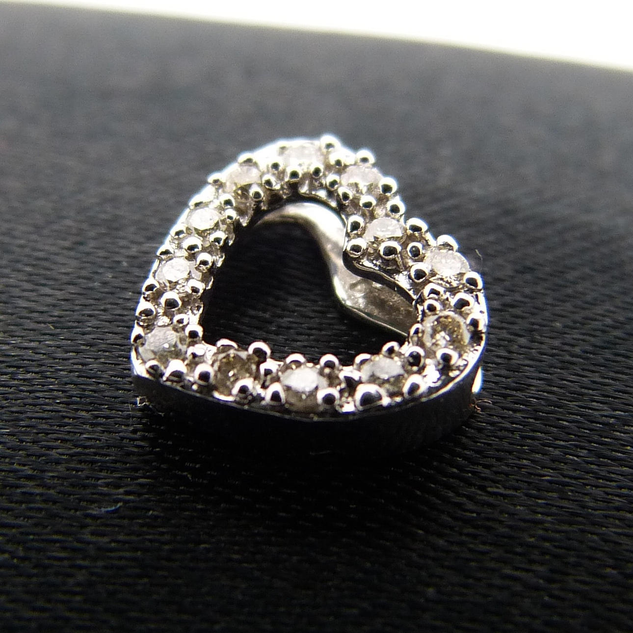 Ett 9k vitguld diamant-set hjärtformat hänge.