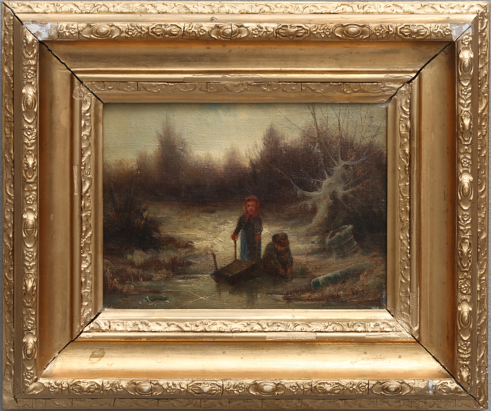 1290859. JAN AF PETERSÉN. VINTERBILD MED BARN VID VATTENDRAG.