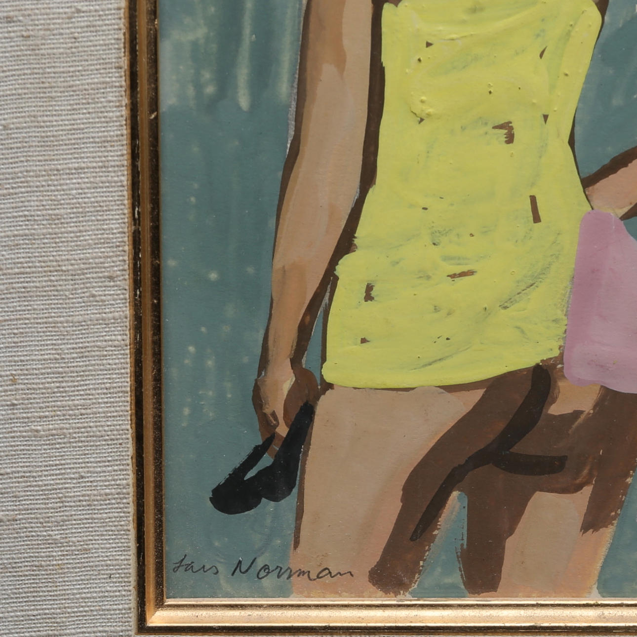 Signerad, gouache, dagmått ca 18x9,5 cm.