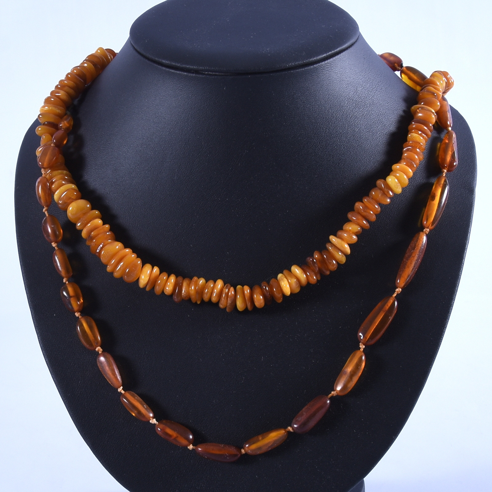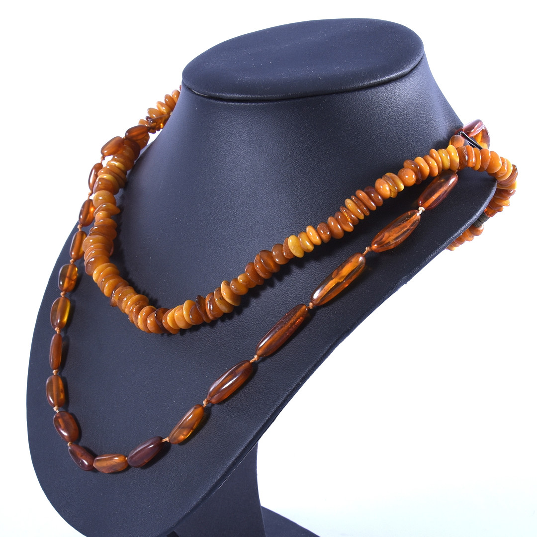 1294551. HALSCOLLIER, 2-stycken, polerad bärnsten.