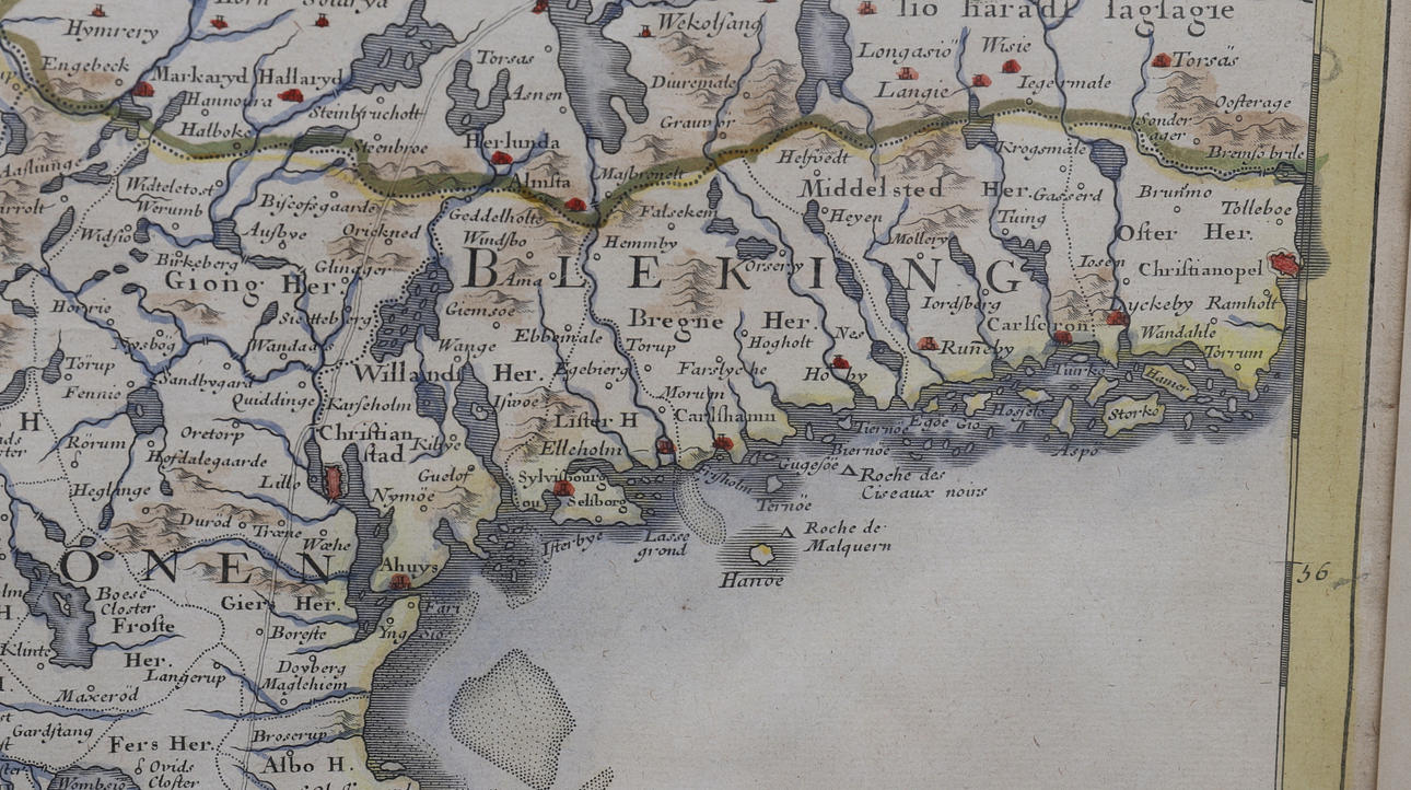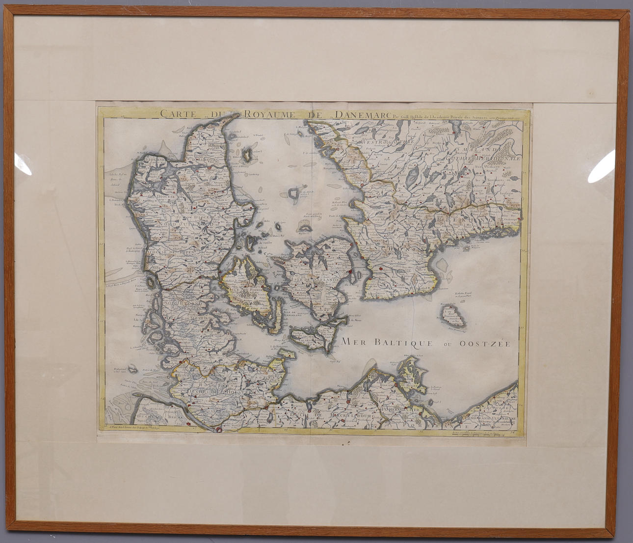 Carte du royaume de Danemarc. Par Guill. De l'Isle de l'Academie royal des avec privilege octob 1710. Bildmått ca 48.5x63.5 cm. Rammått ca 78.5x92 cm.