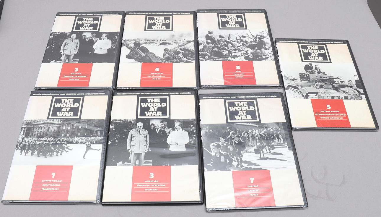 Bland annat box med 8 DVD om andra världskriget, På västfronten intet nytt, Vietnam-boxen, Stalingrad.