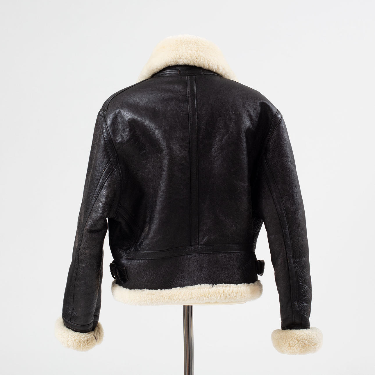 Fårskinn, märkt "Original shearling". Blixtlås och remknäppning vid hals. Ärm ca 60 cm, innerärm ca 40 cm, bröstvidd 116 cm, rygglängd ca 57 cm.