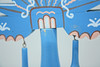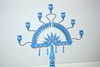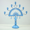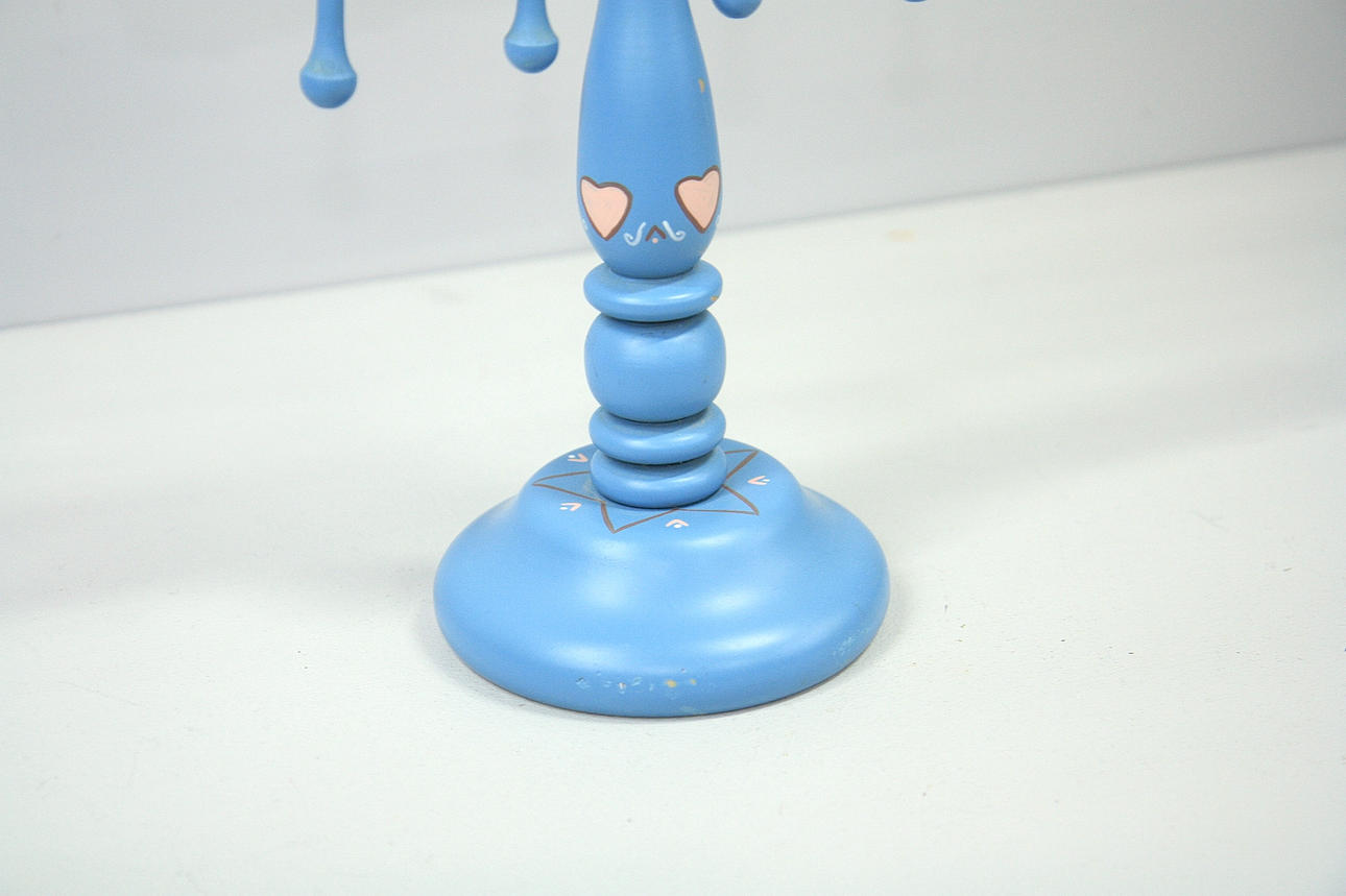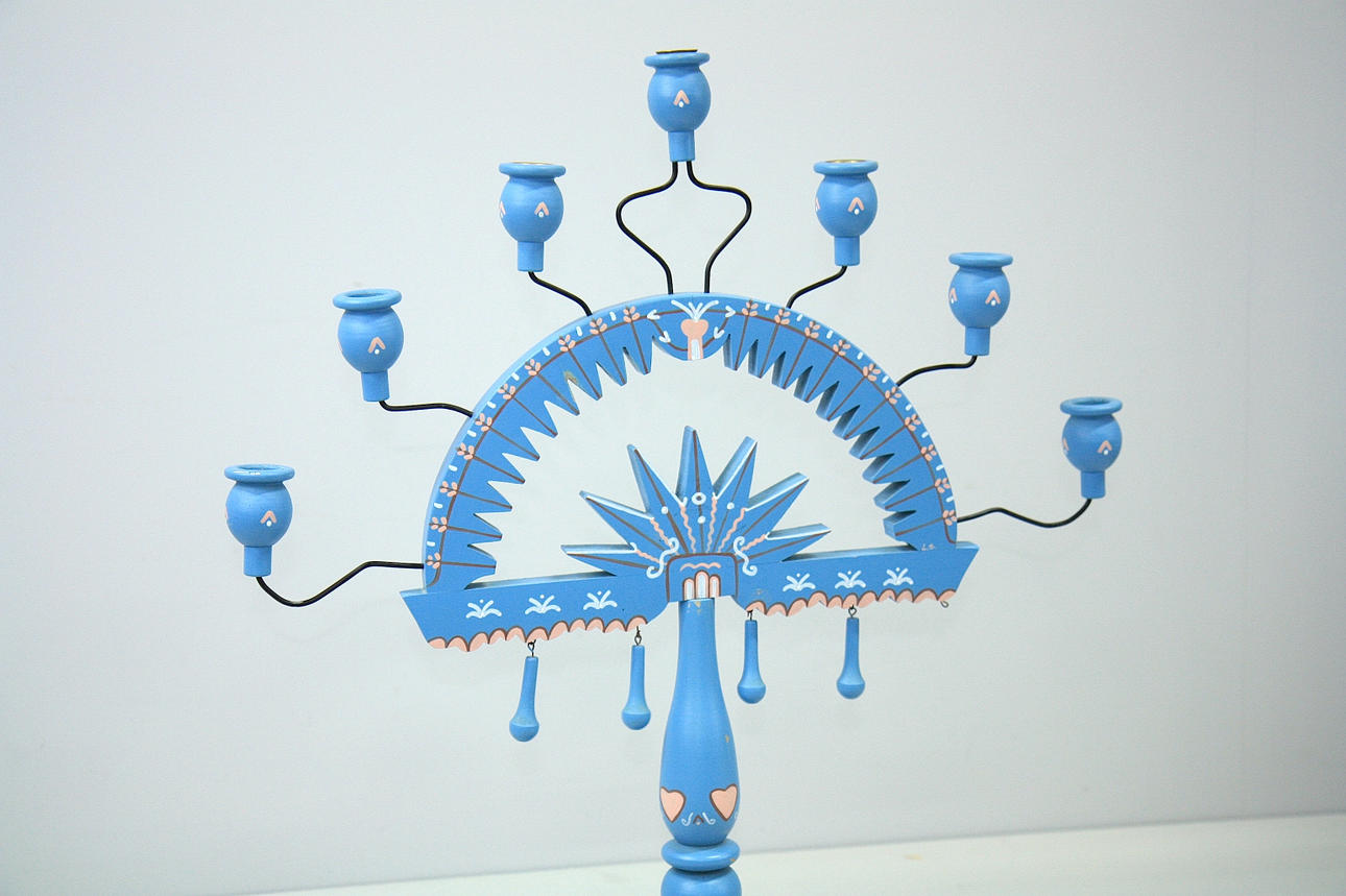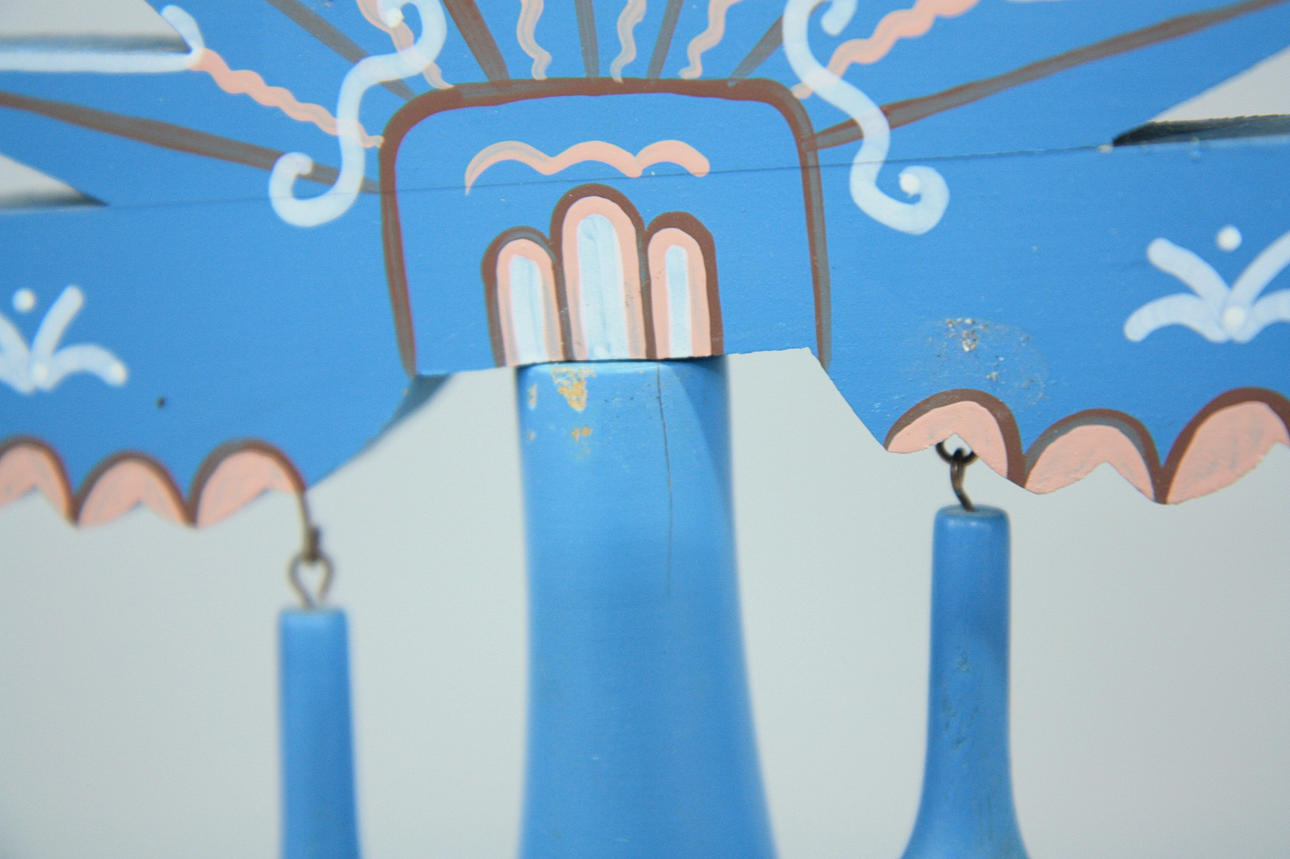 Höjd 59 cm, bredd 53 cm, sju-armad, dekormålad trästake.