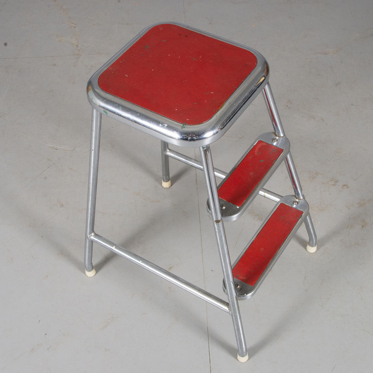 1301387. TRAPPALL, kromad metall med röda trappsteg.