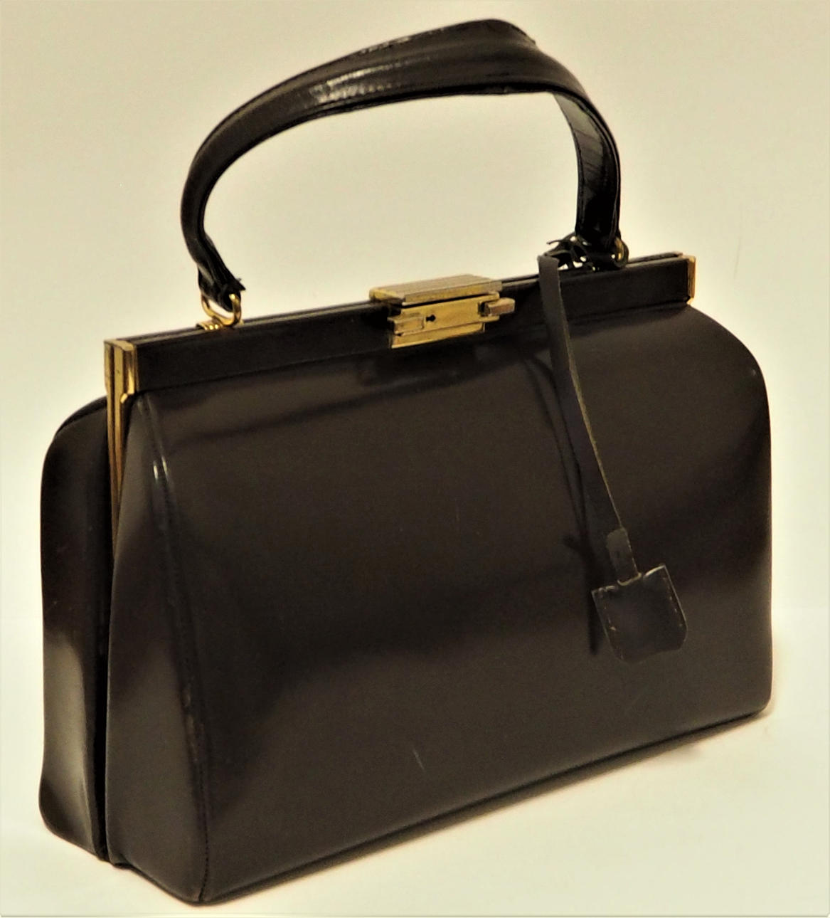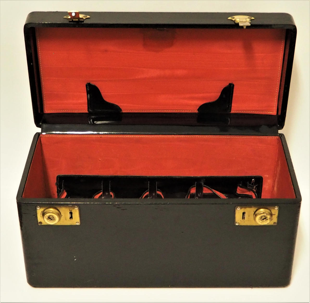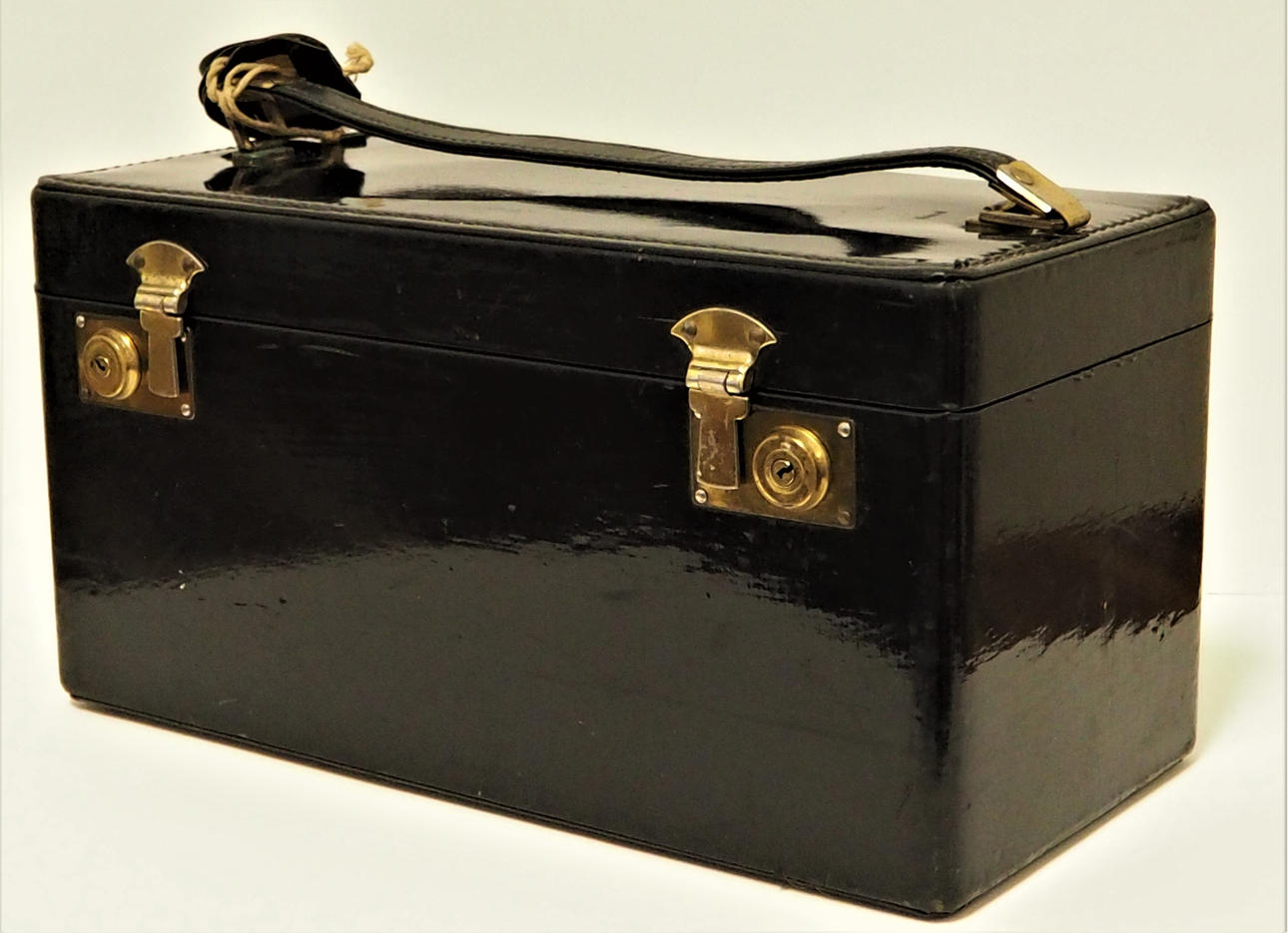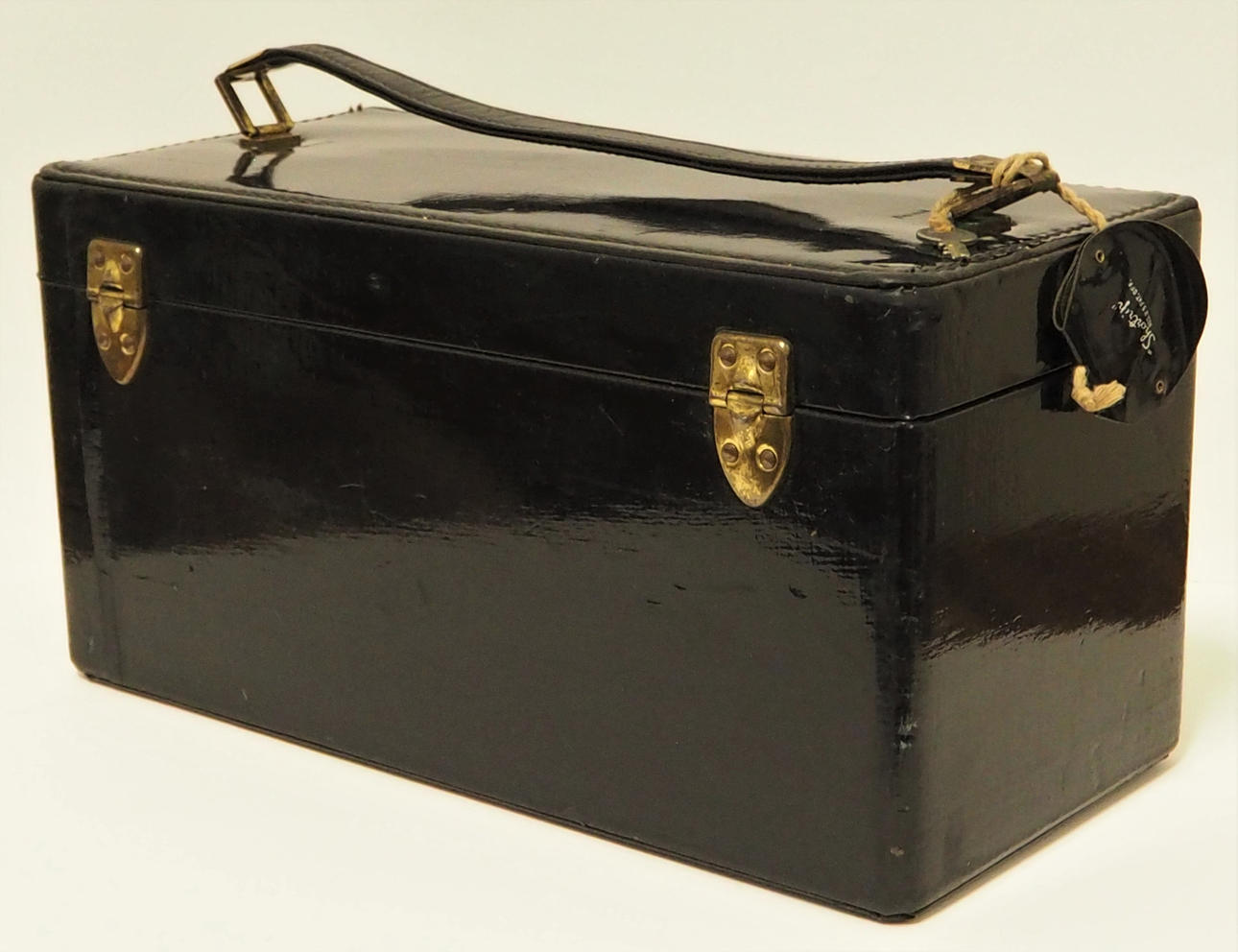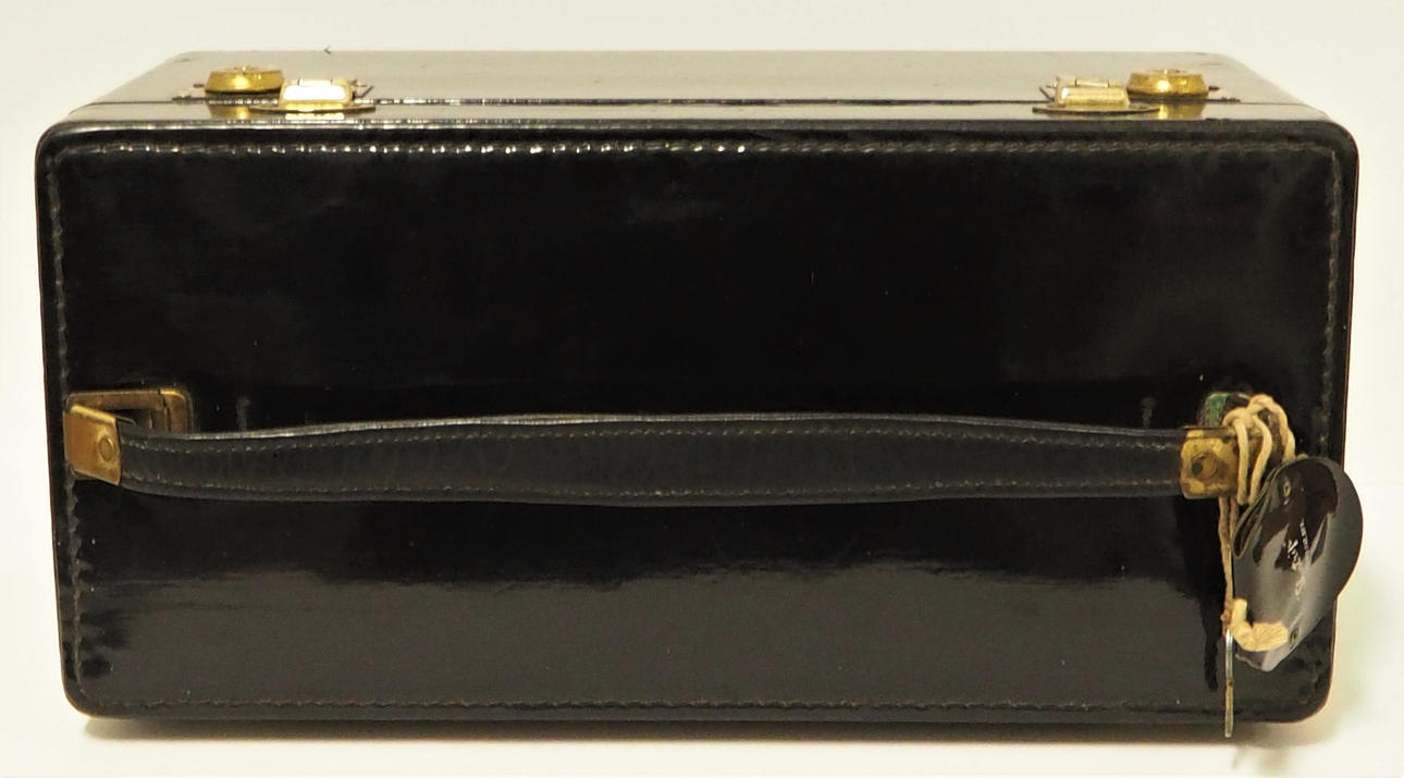 Beautybox, shortrip, u s pat, lackat skinn, längd 38 cm, höjd 19 cm, djup 18 cm.