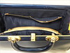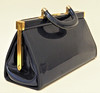 Blå handväska i konstmaterial, längd 28 cm, höjd 14 cm