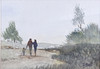 Landskap med personer. Oval 12x16 cm, signerad.