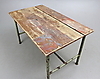 Lösa fogar, rost/skador/slitage. Rester av tidigare bemålning.