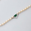18K vitguld, krysopras storlekar smaragd och rund, 1.20 ct, diamanter stl 8/8, ca 0.04 ct. och japanska odlade pärlor med en diameter på 8,5 - 9 mm. 189 cm. 177,1 gr.