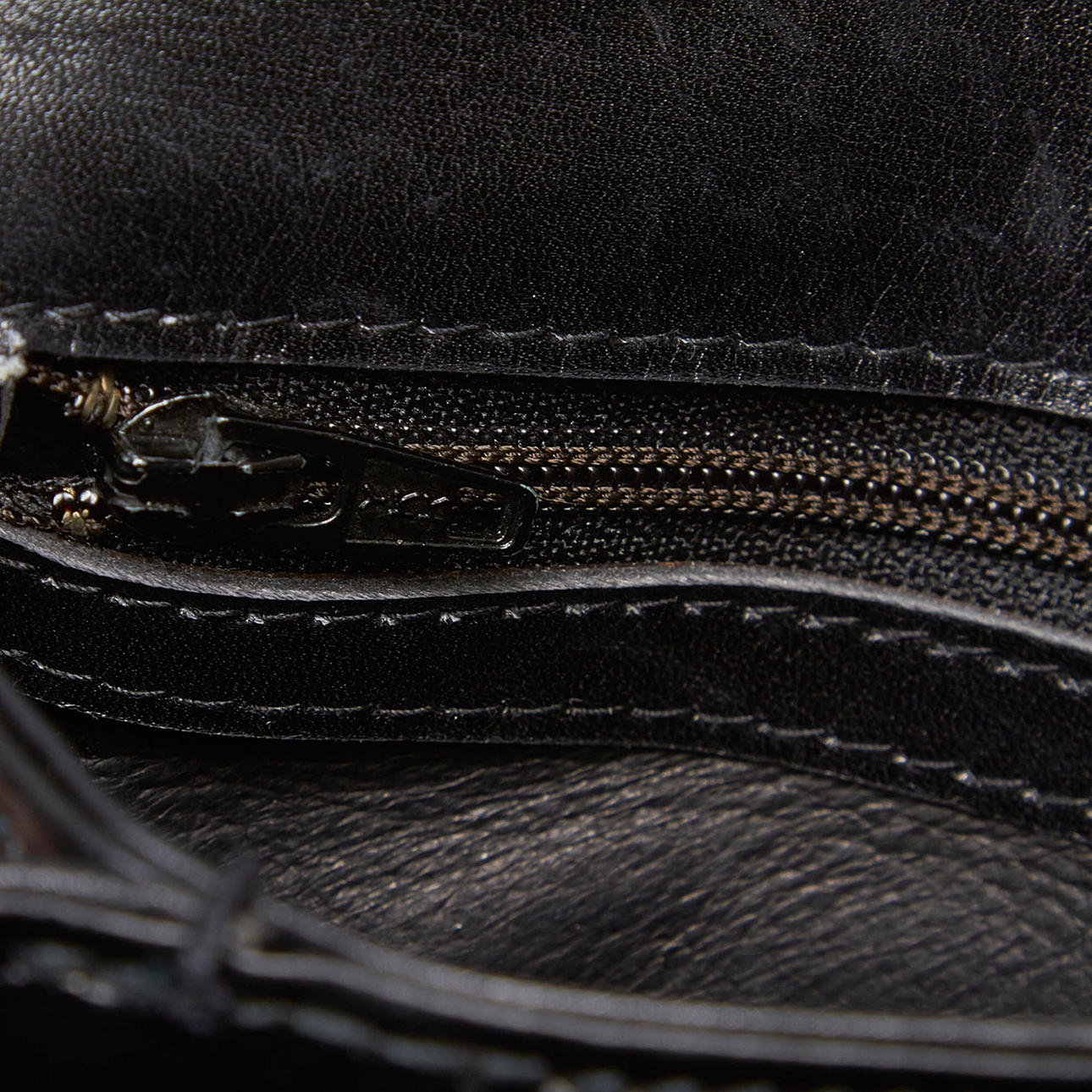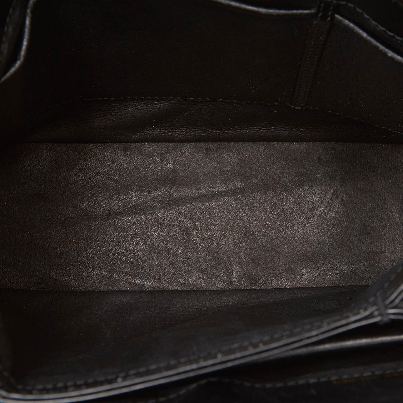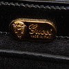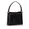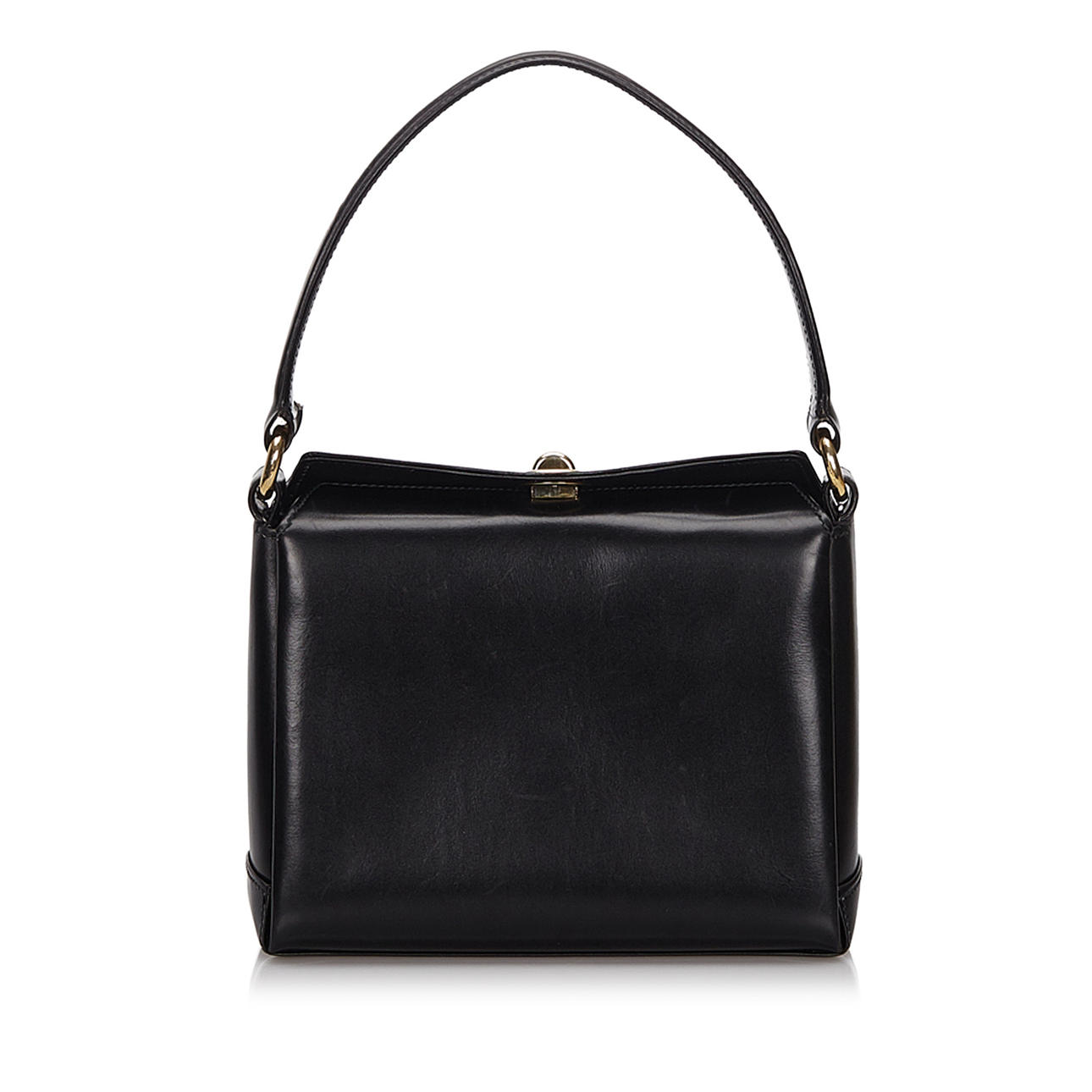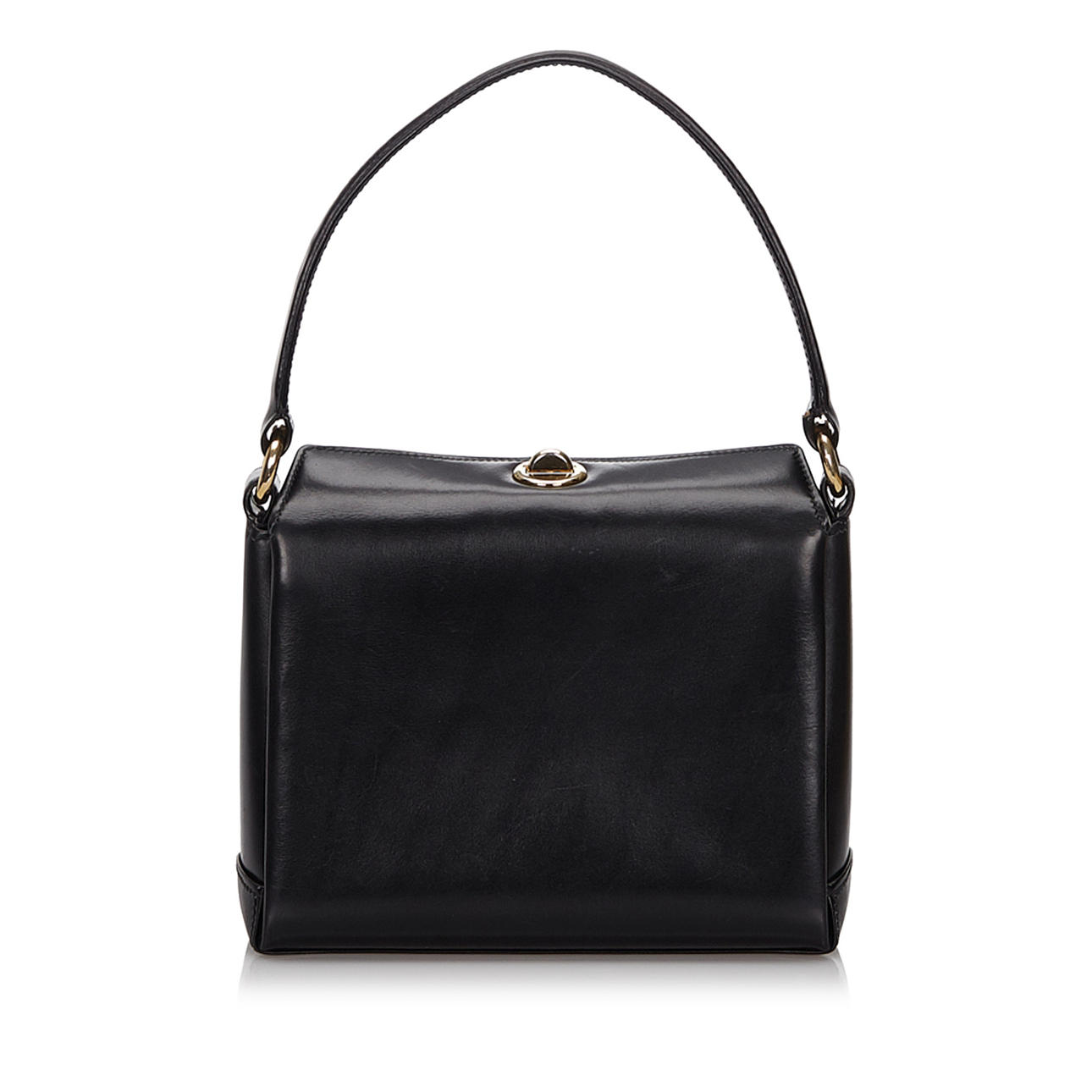 Läder. Försluts med vridlås. Invändigt fack. Väskans höjd exklusive handtag ca 16 cm. Bredd ca 21 cm. Djup ca 7 cm. Serienummer: 0001100907.