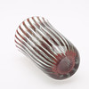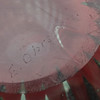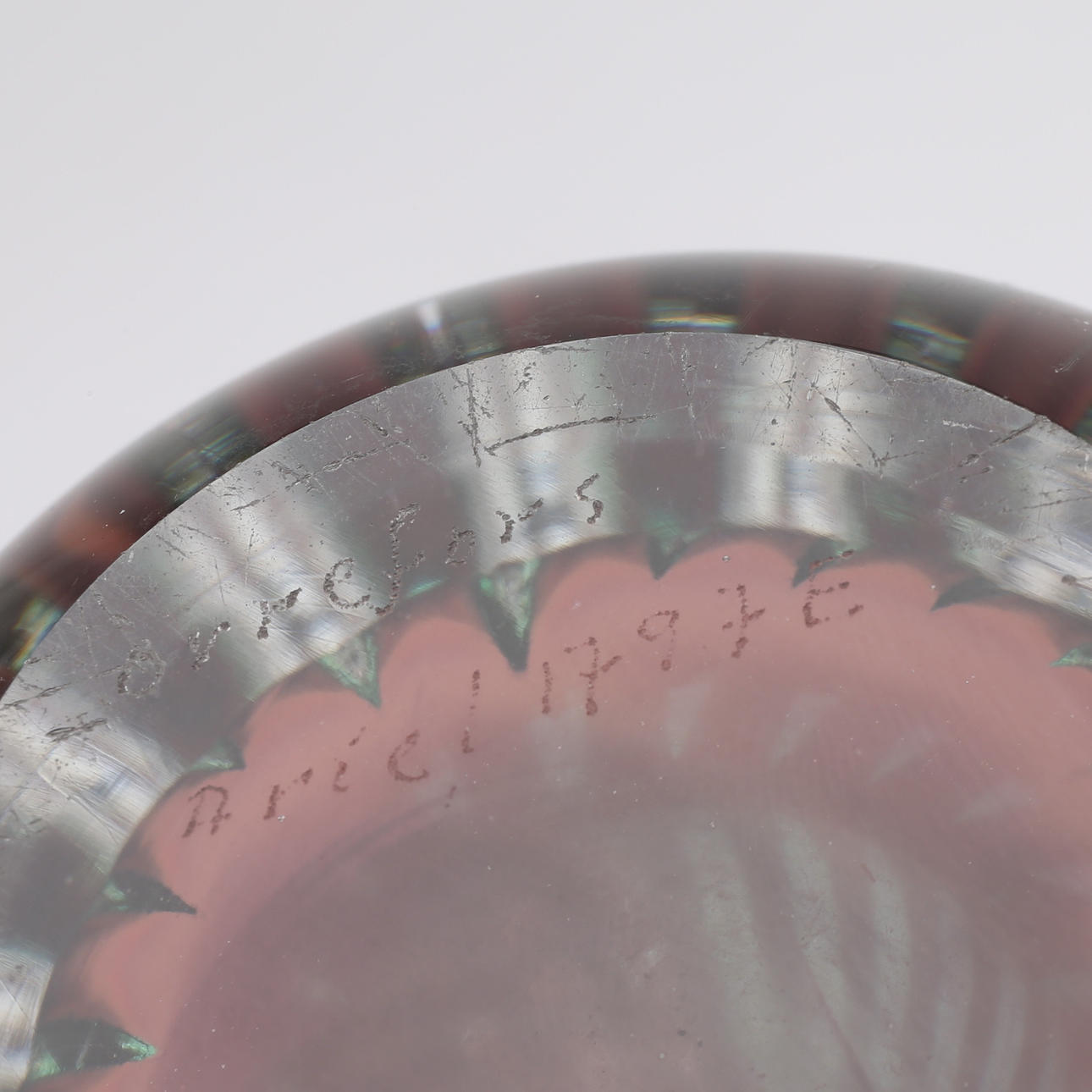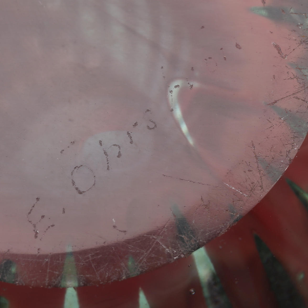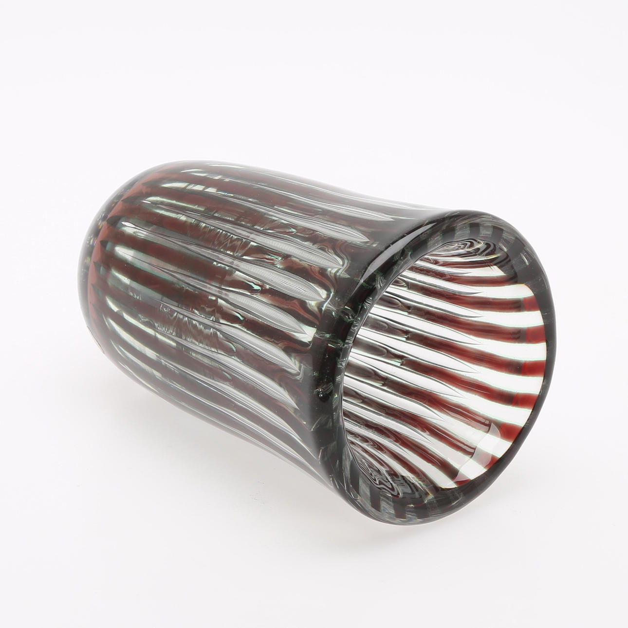Dekor av vertikala ränder i vinrött samt luftbubblor, signerad och numrerad 1797E. Höjd ca 15,5 cm.