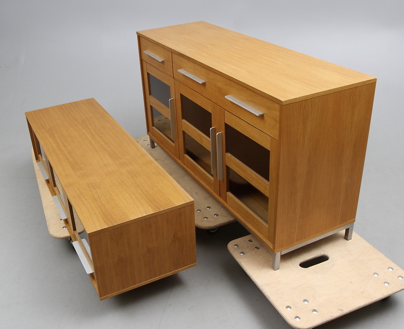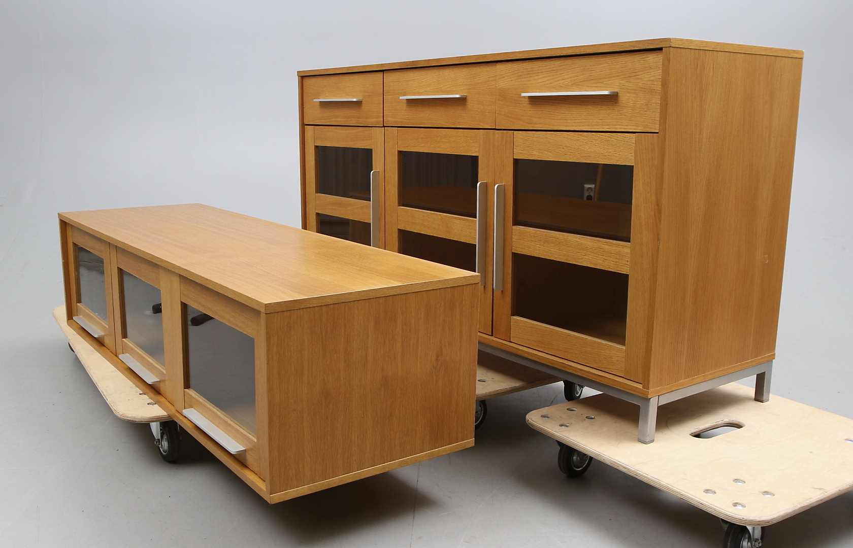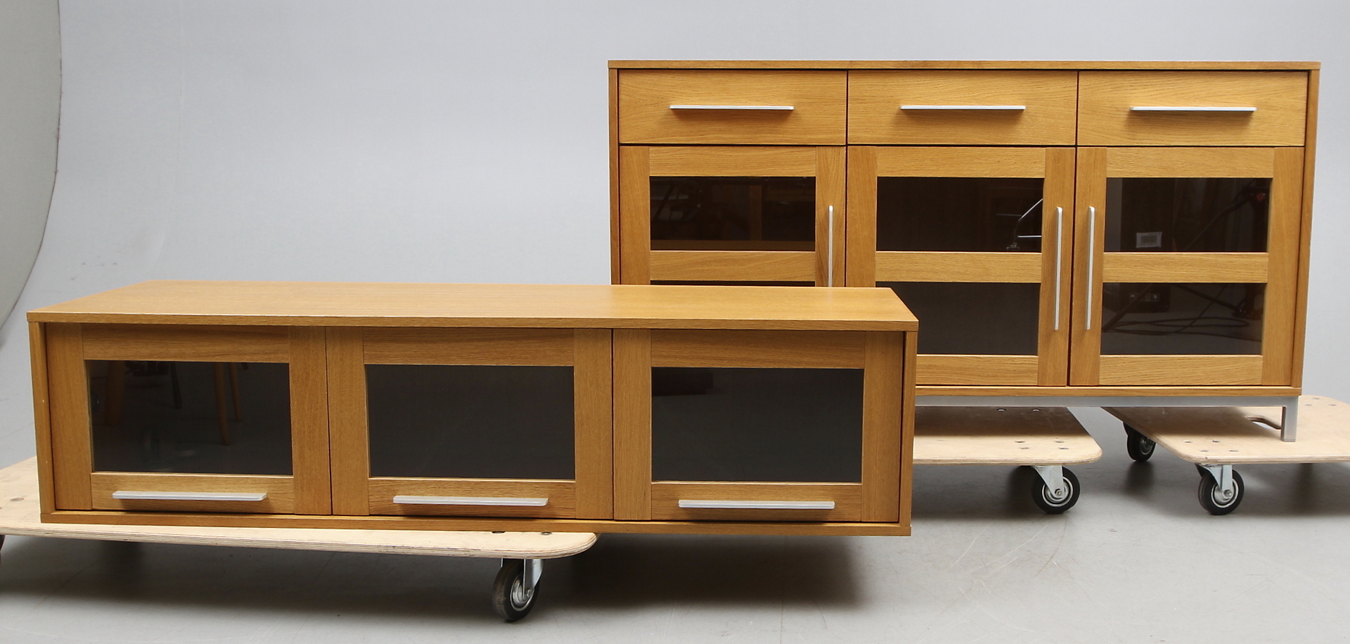 130946. SIDEBOARD, samt väggfast vitrin, 2000 tal.