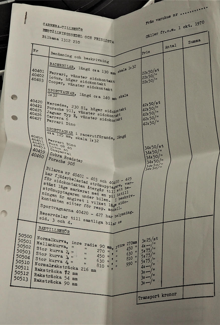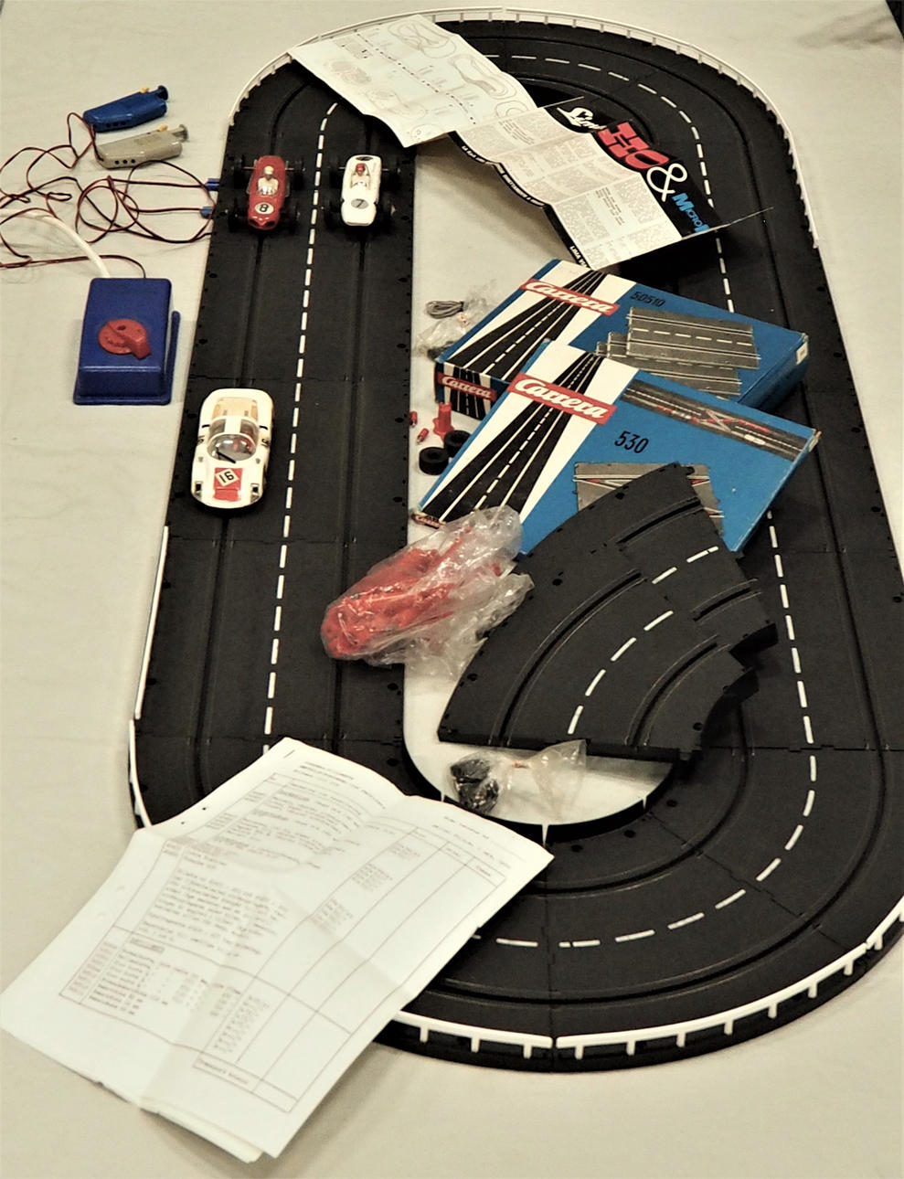 Bilbana enligt bild + en förpackning nr 50510 och 530, två lösa delar och diverse tillbehör.
