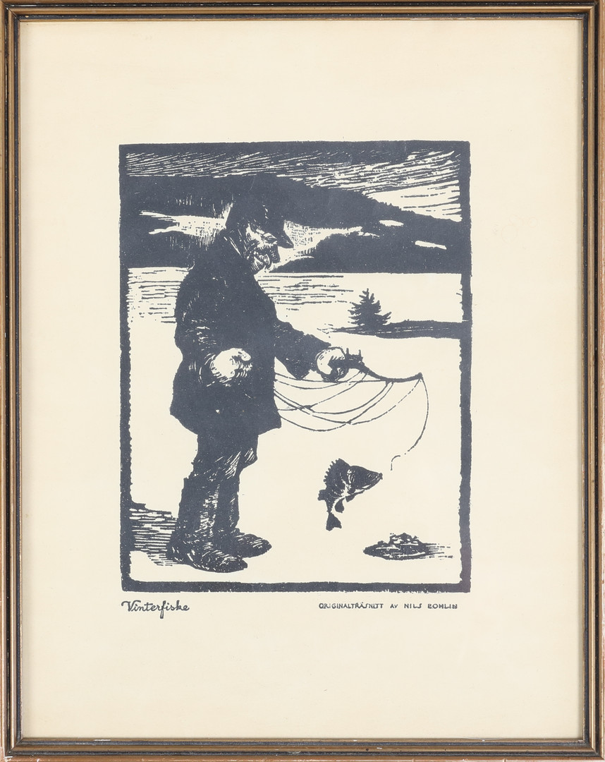 1312082. NILS BOHLIN. originalträsnitt, "Vinterfiske".