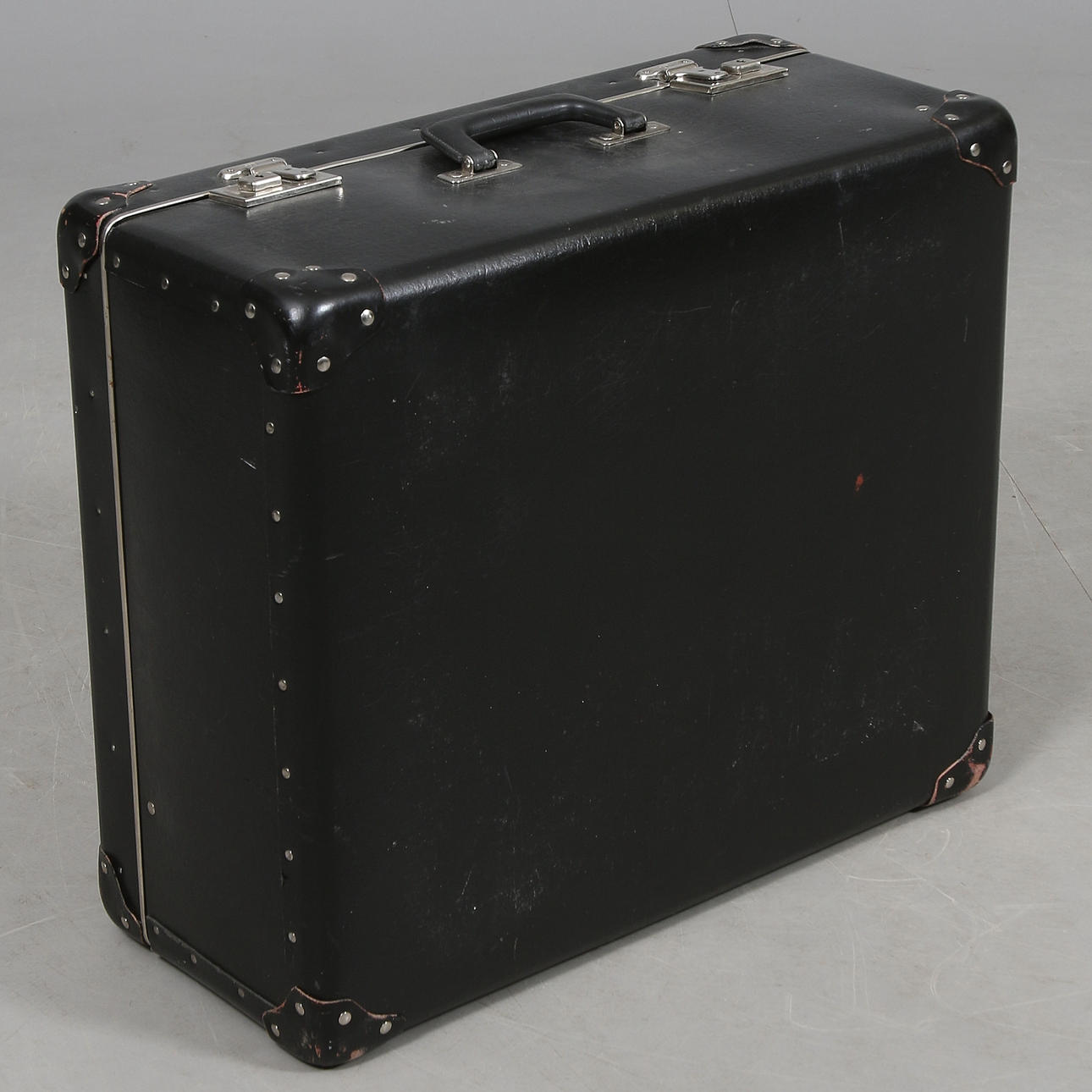 Med väska, mått med väska längd 44, bredd 46, höjd 24 cm.
