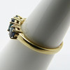 Alexandrit ädelstenar i denna ring är färgskiftande och uppvisar olika nyanser av blått, rött och grönt i dagsljus eller under lampljus.