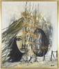 Surrealistisk komposition med kvinna. Signerad Boch. A tergo påskrift. 67x57 cm.