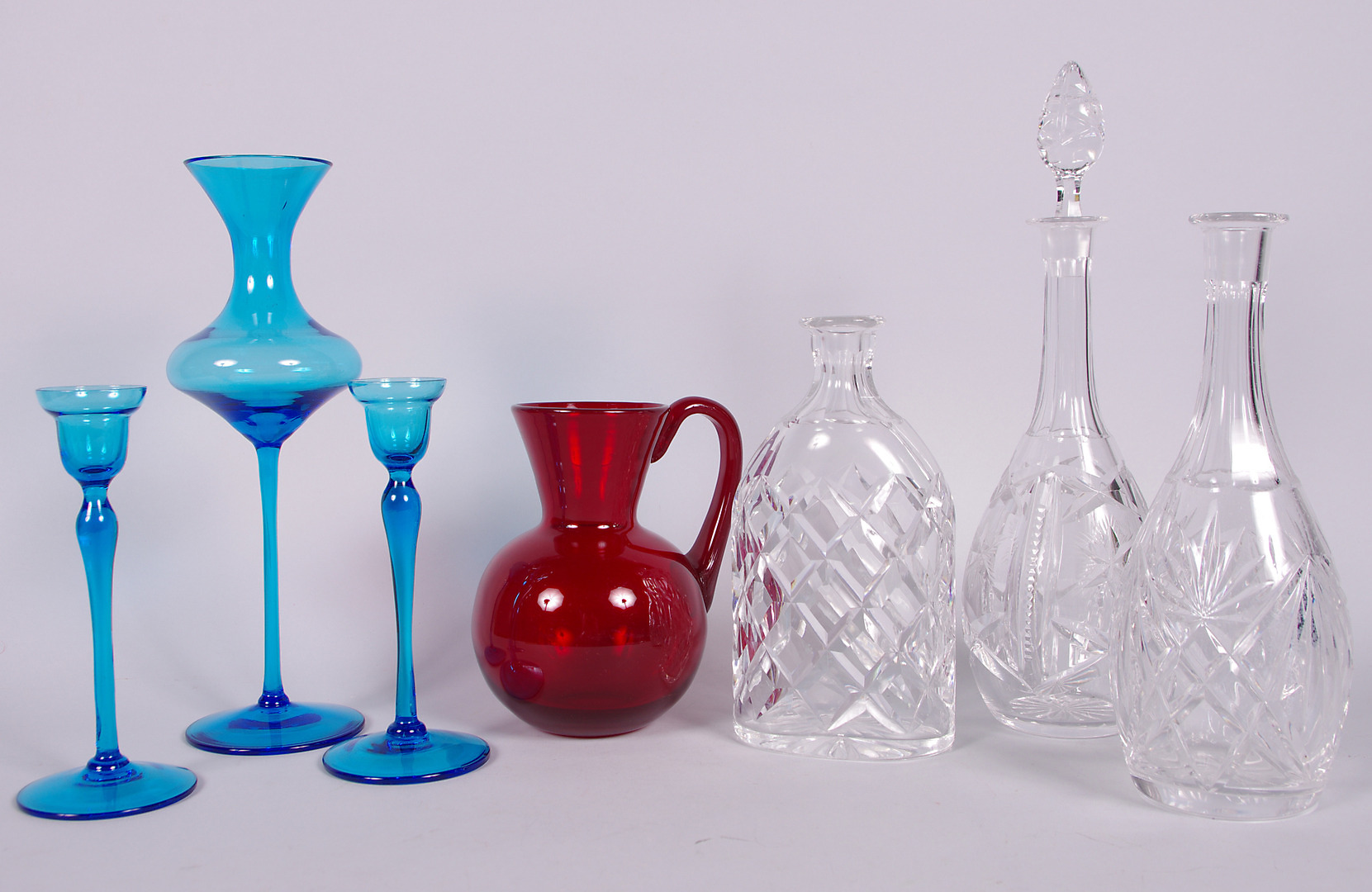 132533. KARAFFER, VASER SAMT LJUSSTAKAR, glas.