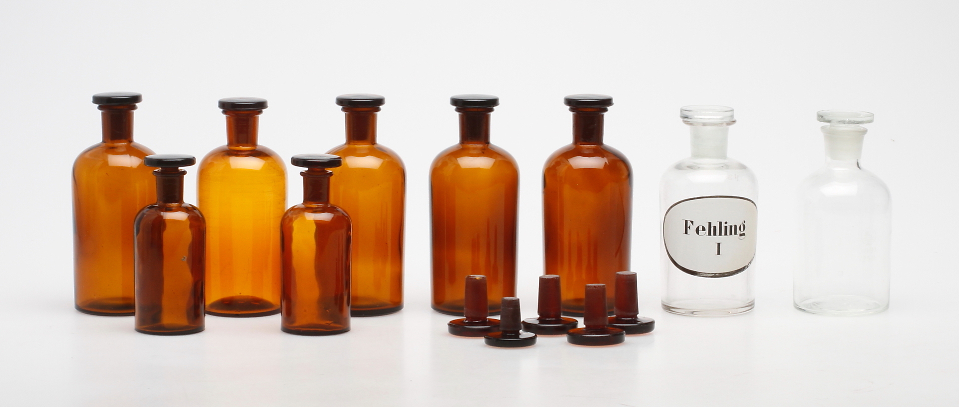 132563. APOTEKSFLASKOR, 9 st, 1900-talets första hälft.