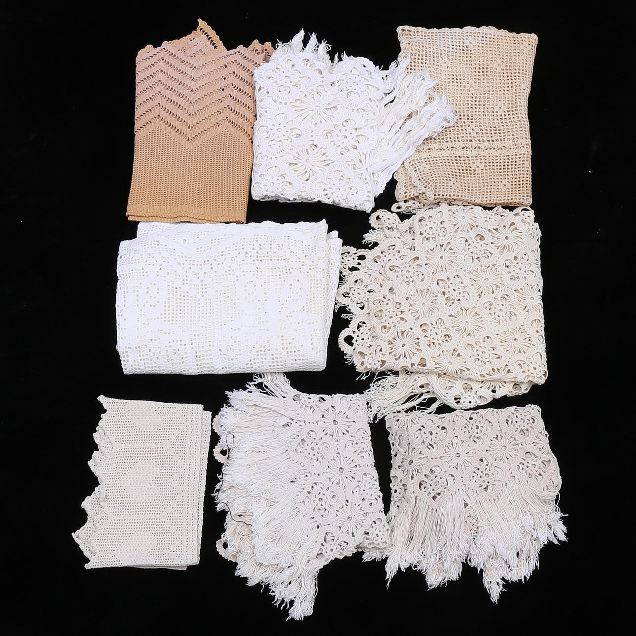 Virkade kappor med och utan frans.