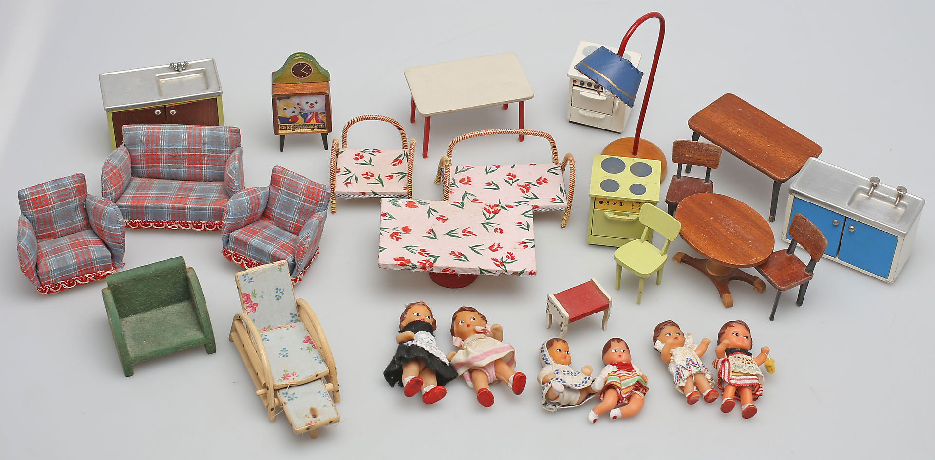 132944. DOCKSKÅPSMÖBLER OCH DOCKOR, 1900-tal.