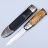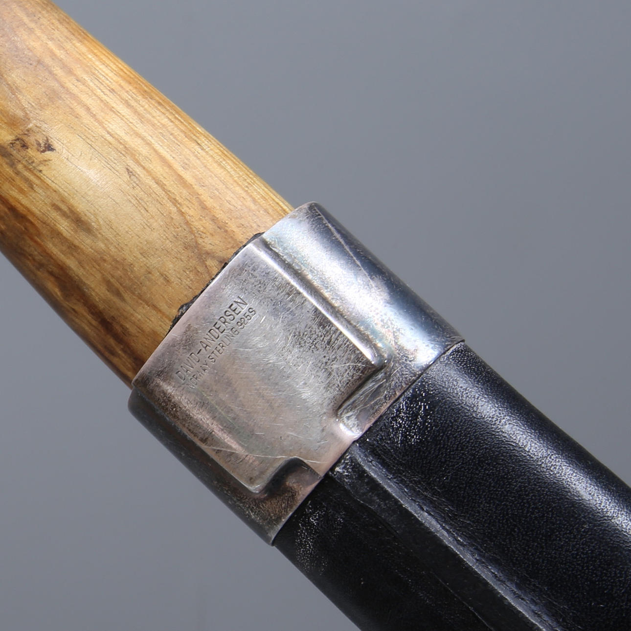 Kniv med trähandtag, blad i stål, slida i läder och silver, längd inkl. slida ca 24 cm