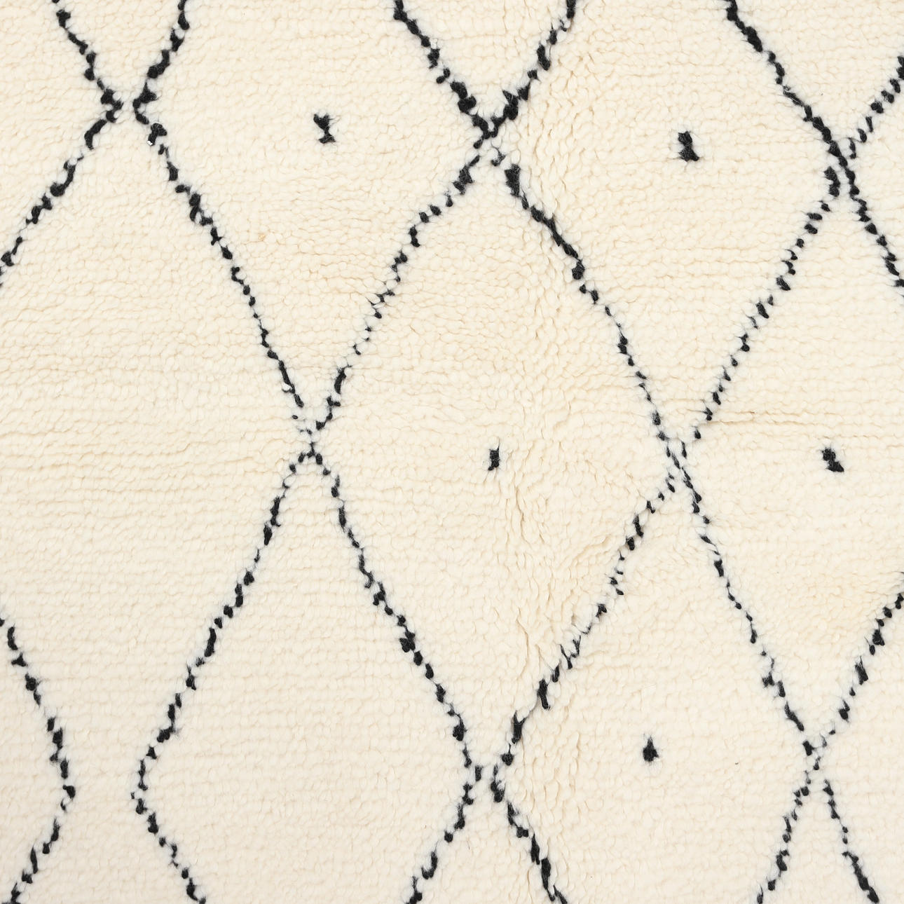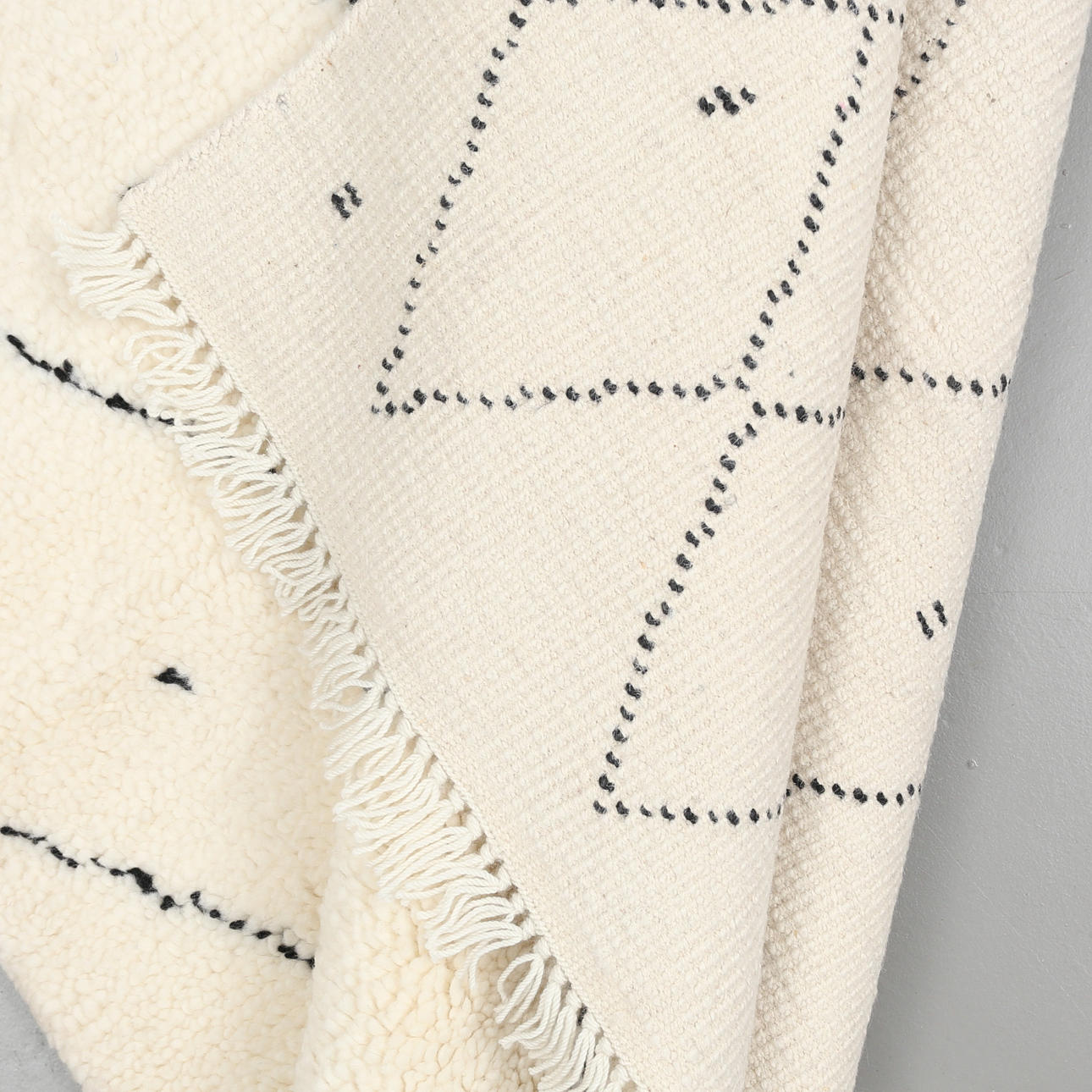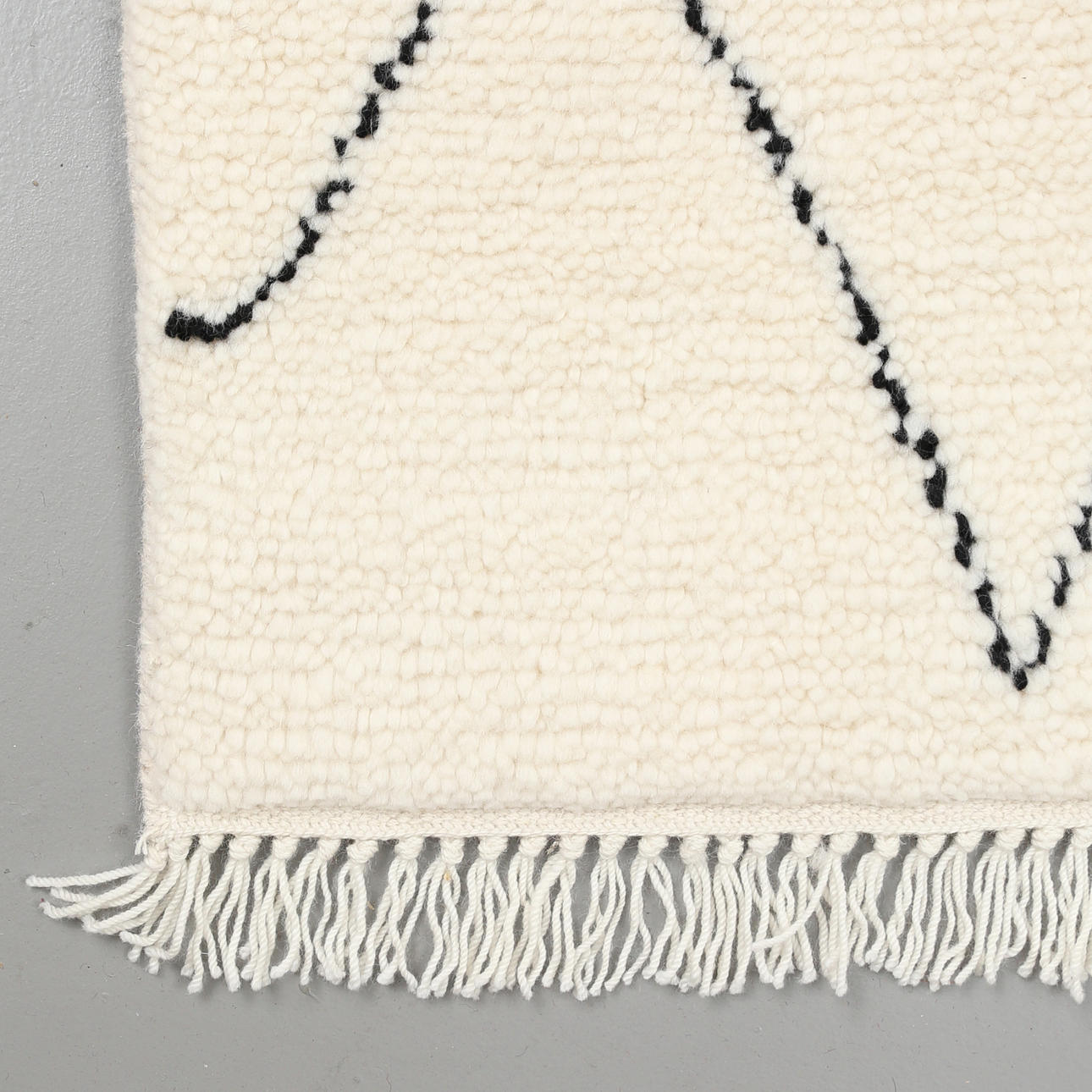 Matta i marockansk stil helt i ull, dekor i svart på naturvit botten.