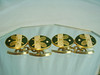 Ovala emaljerade displaytavlor med guldaccent nät, boll och tennisracketar.
