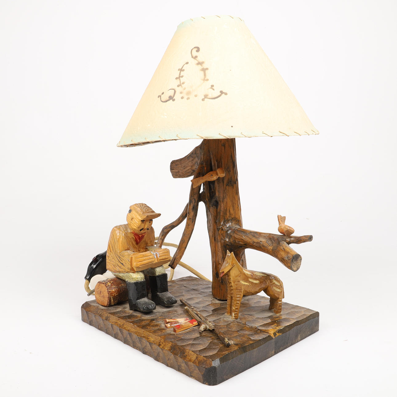 1333712. BORDSLAMPA, snidat trä, 1900-tal.