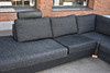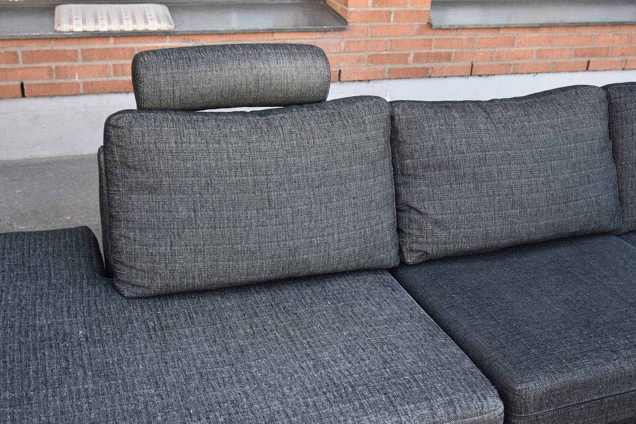 Soffa med avtagbar klädsel på lösa plymåer, samt ett flyttbart nackstöd